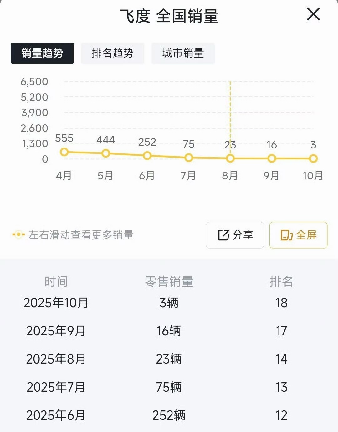 飞度,10月份卖了3台。师兄建议赶紧推出改款,如图2,早日把销量降为0。
