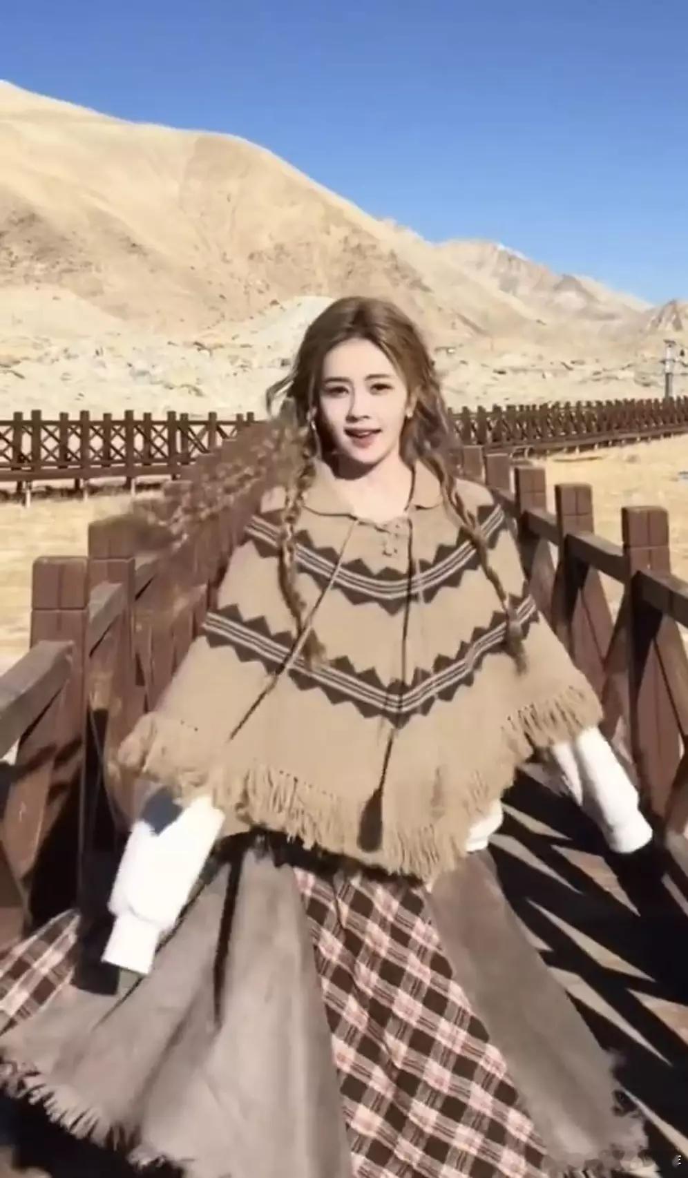 白鹿梳麻花辫妆容甜美 穿流苏裙化身异域公主