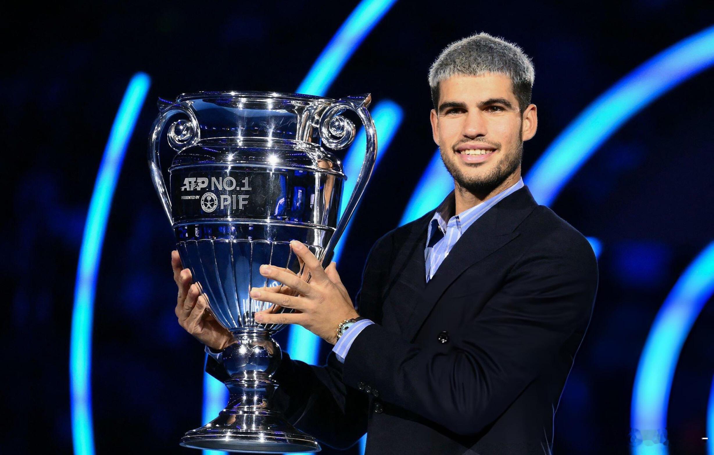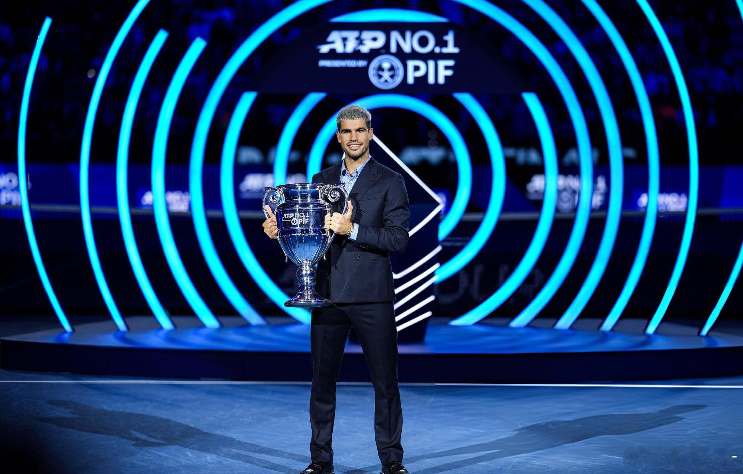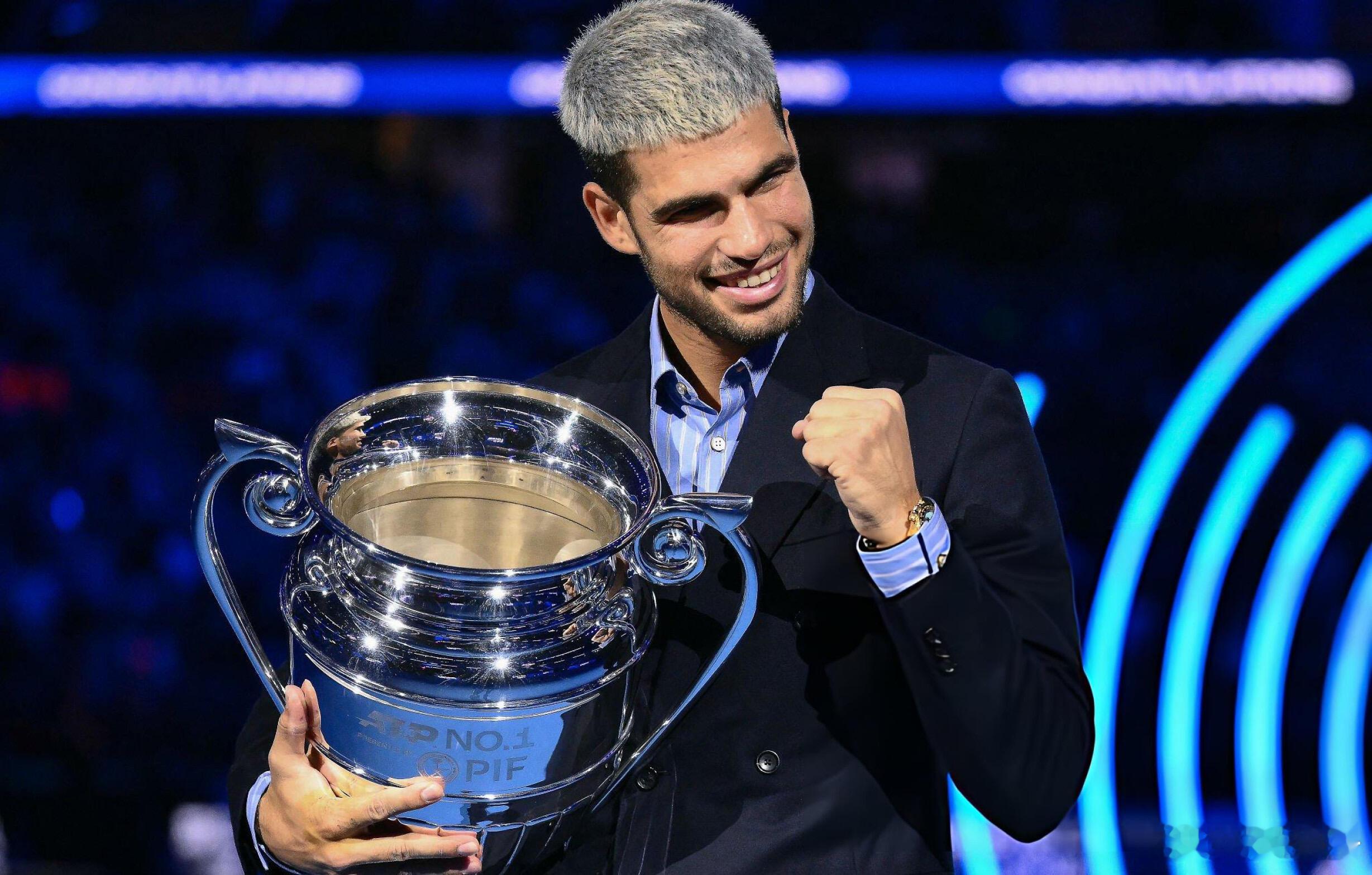 🎊恭喜阿卡第二次捧起年终世界第一奖杯🏆22岁的西班牙网球天才阿尔卡拉斯,在都灵年终总决赛正式领取本赛季年终世界第一奖杯,职业生涯第二次登顶这一巅峰荣誉!🔥从19岁成为史上最年轻的年终第一,到如今以更成熟的姿态再度加冕,单赛季豪取70胜8冠,包揽法网、美网两座大满贯,斩获3座ATP1000大师赛冠军,小组赛三战全胜零丢盘强势晋级四强,用600个关键积分锁定小组第一。年终总决赛征程仍在继续,他将冲刺生涯首座总决赛冠军,继续加油!💪
