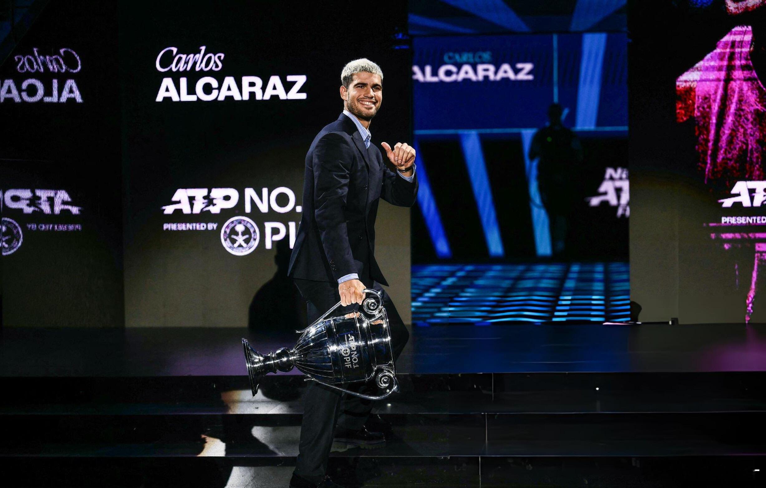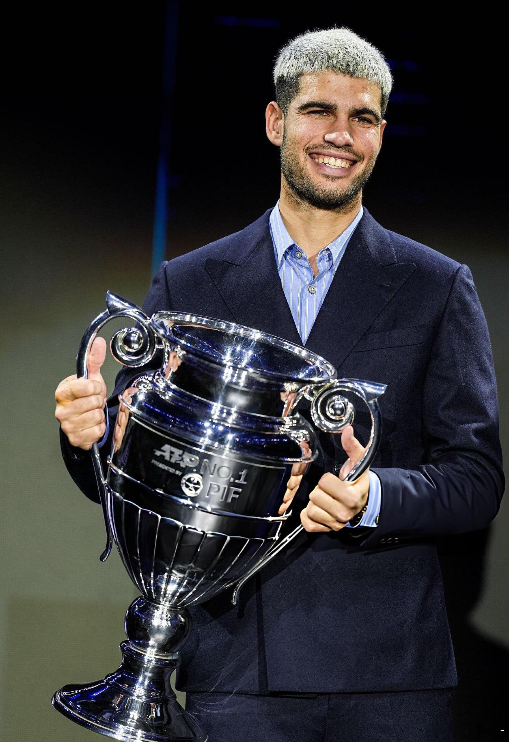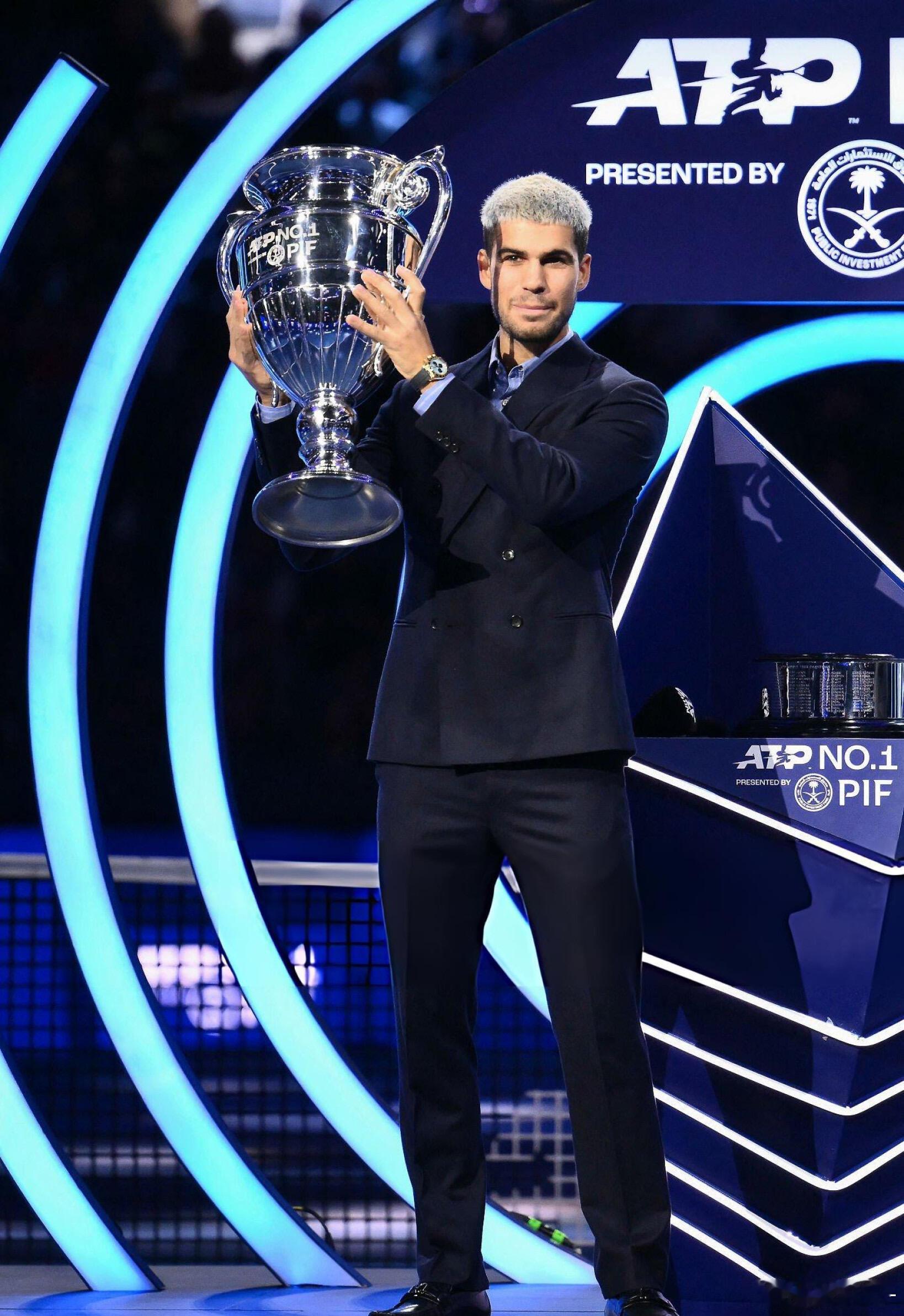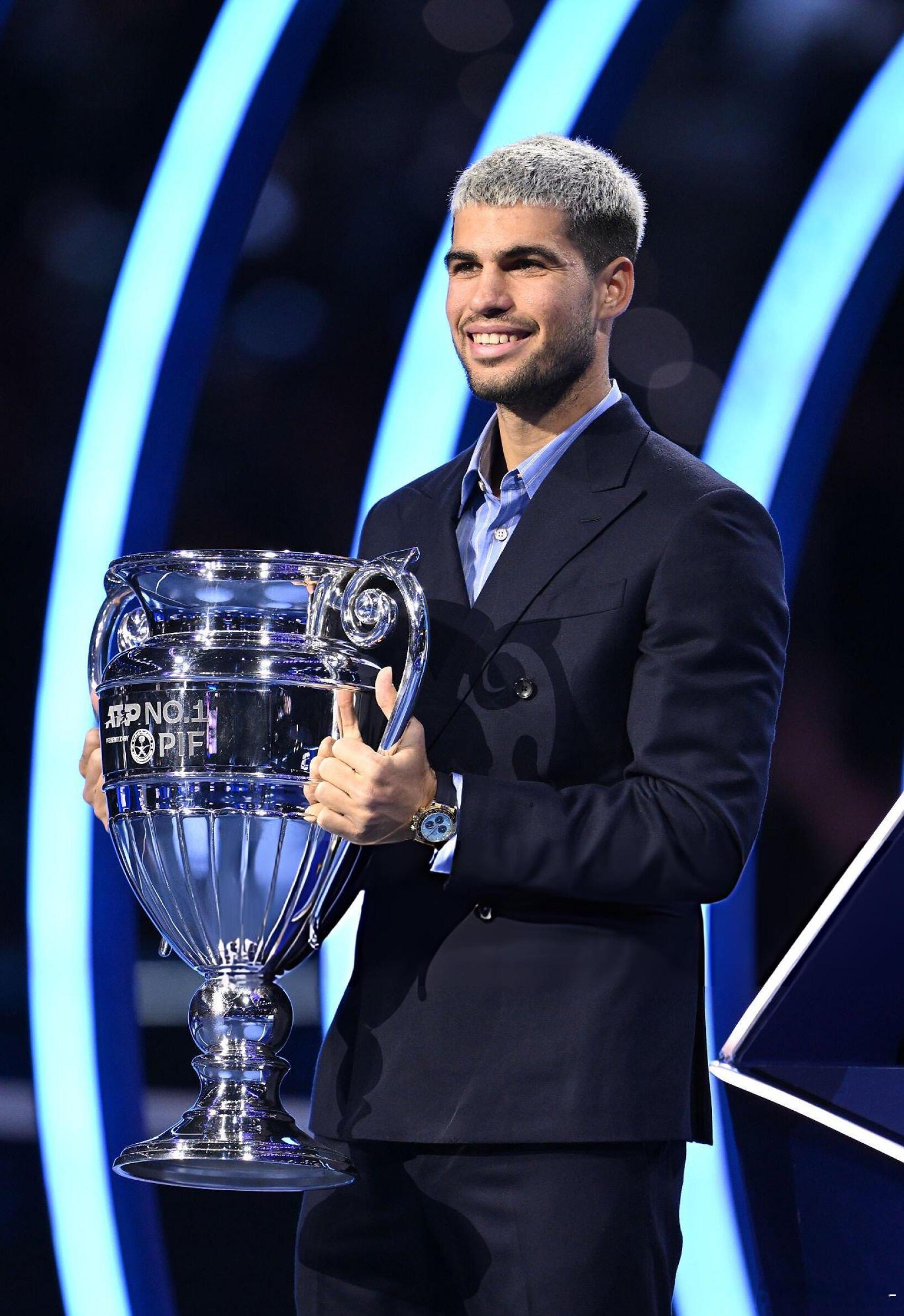 🎊恭喜阿卡第二次捧起年终世界第一奖杯🏆22岁的西班牙网球天才阿尔卡拉斯,在都灵年终总决赛正式领取本赛季年终世界第一奖杯,职业生涯第二次登顶这一巅峰荣誉!🔥从19岁成为史上最年轻的年终第一,到如今以更成熟的姿态再度加冕,单赛季豪取70胜8冠,包揽法网、美网两座大满贯,斩获3座ATP1000大师赛冠军,小组赛三战全胜零丢盘强势晋级四强,用600个关键积分锁定小组第一。年终总决赛征程仍在继续,他将冲刺生涯首座总决赛冠军,继续加油!💪