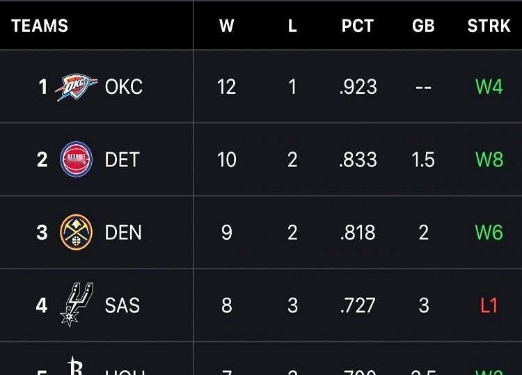 现在NBA的战绩榜看了吗?雷霆12胜1负、活塞10胜2负,居然和掘金一起挤在前五,这要是三年前谁敢想啊?那时候雷霆、活塞、马刺、火箭还在摆烂争状元呢,现在一个个都能争冠了。反观湖人、勇士这些老牌强队,要么阵容老了要么伤病多,竞争力确实下来了。 雷霆靠SGA和霍姆格伦撑起来,SGA场均30.5分排联盟第三,霍姆格伦一个新秀就拿17分+7.9篮板+2.5盖帽,防守还贼硬。活塞那边坎宁安摆脱伤病后场均23.4分+7.1助攻,关键球稳得很,杜伦二年级就抢11.2个篮板,内线顶得死死的。这种靠自己选秀培养年轻人的球队,走得反而更扎实,不像有些队砸钱买巨星却凑不到一块。现在联盟确实是年轻人的天下了,老球迷可能得慢慢适应新面孔,但看着新星打出来也挺带劲的。