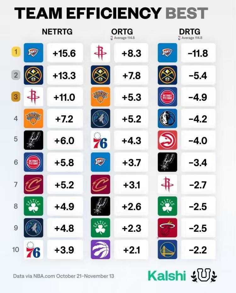 “宇宙勇”既视感,让人生畏的球队——雷霆!谁还能与之抗衡?雷霆净效率联盟第一,防守效率也是联盟第一,领先第二名掘金一倍还多,更离谱的是球队二当家杰伦威廉姆斯还在缺阵。不仅首发强,第二阵容甚至也是联盟最强,球队冠军功臣卡鲁索表示,自己已经绝对谦逊,但雷霆的二阵容确实是联盟最强。这还让其他球队怎么玩,现在战绩联盟第一,这么打下去,等杰伦威廉姆斯复出,几乎可以提前颁发总冠军了。未来几年雷霆都让人生畏,毫无敌手。或者只有场场爆发的约基奇才能带领掘金与之一战了。