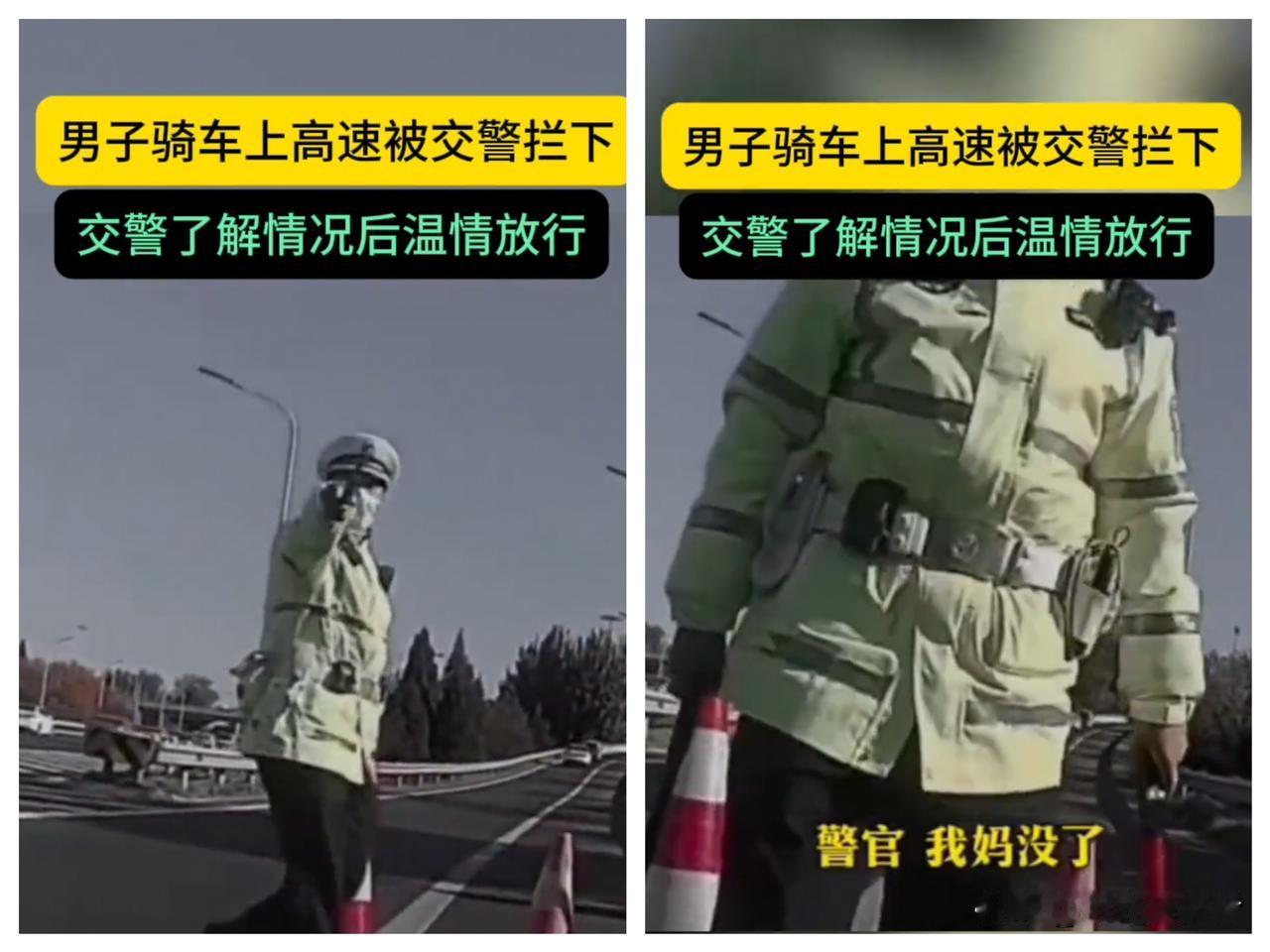 小事不小!一句“我妈没了”,看哭无数人!北京男子骑摩托闯五环被拦,当场泪崩嘶吼:“我妈没了”!要回通州见最后一面,我实在着急! 交警立马把到嘴的批评咽回去,收回警棍赶紧通报协调,放行时还轻声安慰:“节哀师傅,刚耽误您了。”男子抹着泪深深鞠躬,哽咽着说“谢谢”才驶离。 “这才是有温度的执法,既守了底线又懂人情”“中国人最怕半夜家人急电,这种痛真的感同身受”。 说真的,妈妈离世的痛苦真的会让人大脑一片空白!骑摩托车的师傅一定要注意安全呀! 网友刷屏点赞:“规则是死的,人心是活的!“这才是执法该有的样子,有力度更有温度”“这种天人永隔的急难,谁看了能不共情”啊! 说实话,交警的做法,既没“破规则”,又没有让人情破“安全线”。为北京交警的温情执法点赞!愿天下父母都平安康健!