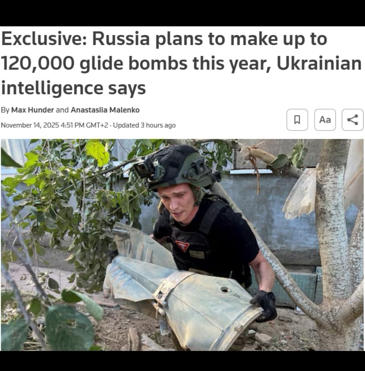 据乌克兰情报总局称,俄罗斯计划在年底前生产多达 12 万枚制导航弹,其中包括 500 枚新型远程炸弹。乌克兰军事情报局副局长瓦迪姆·斯基比茨基称,俄罗斯还计划在 2025 年生产多达 7 万架无人机。俄罗斯总参谋部情报总局的一名代表告诉路透社,俄罗斯军队每天发射 200 至 250 枚滑翔炸弹。据乌克兰国防部上个月的数据,平均每天发射约 170 枚。那么问题来了