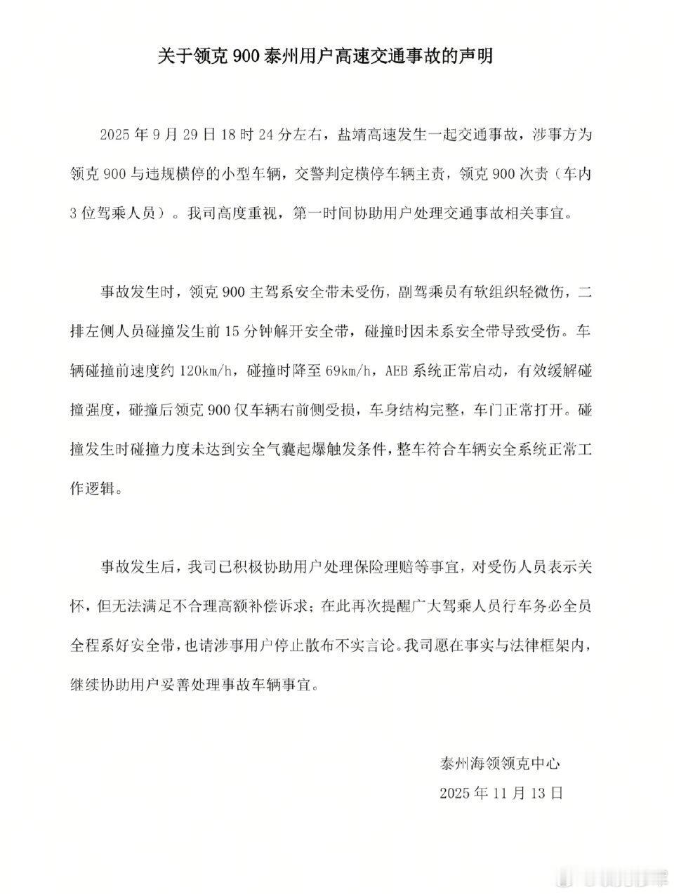 这年头发生事故不找保险了,找车企了一辆领克900发生事故,信口雌黄说领克安全带没炸,没启动,导致二排受伤还说领克远程锁定行车记录仪想利用舆论反逼品牌来给他更多的利益事实情况是 二排自己没系安全带,行车记录仪没有开启这一天天的,魔幻的世界,太有意思了。支持企业通过正规手段维护自己的权利