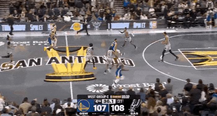 太夸张了!文班亚马这球也能盖到? 在今天NBA季中锦标赛勇士对阵马刺的第四节比赛最后时刻,巴特勒反击中接库里妙传后欲完成上篮得分,结果被文班亚马送上钉板大帽! 在已经失位的情况下一防二居然还能完成封盖!文班亚马这天赋确实没得说!