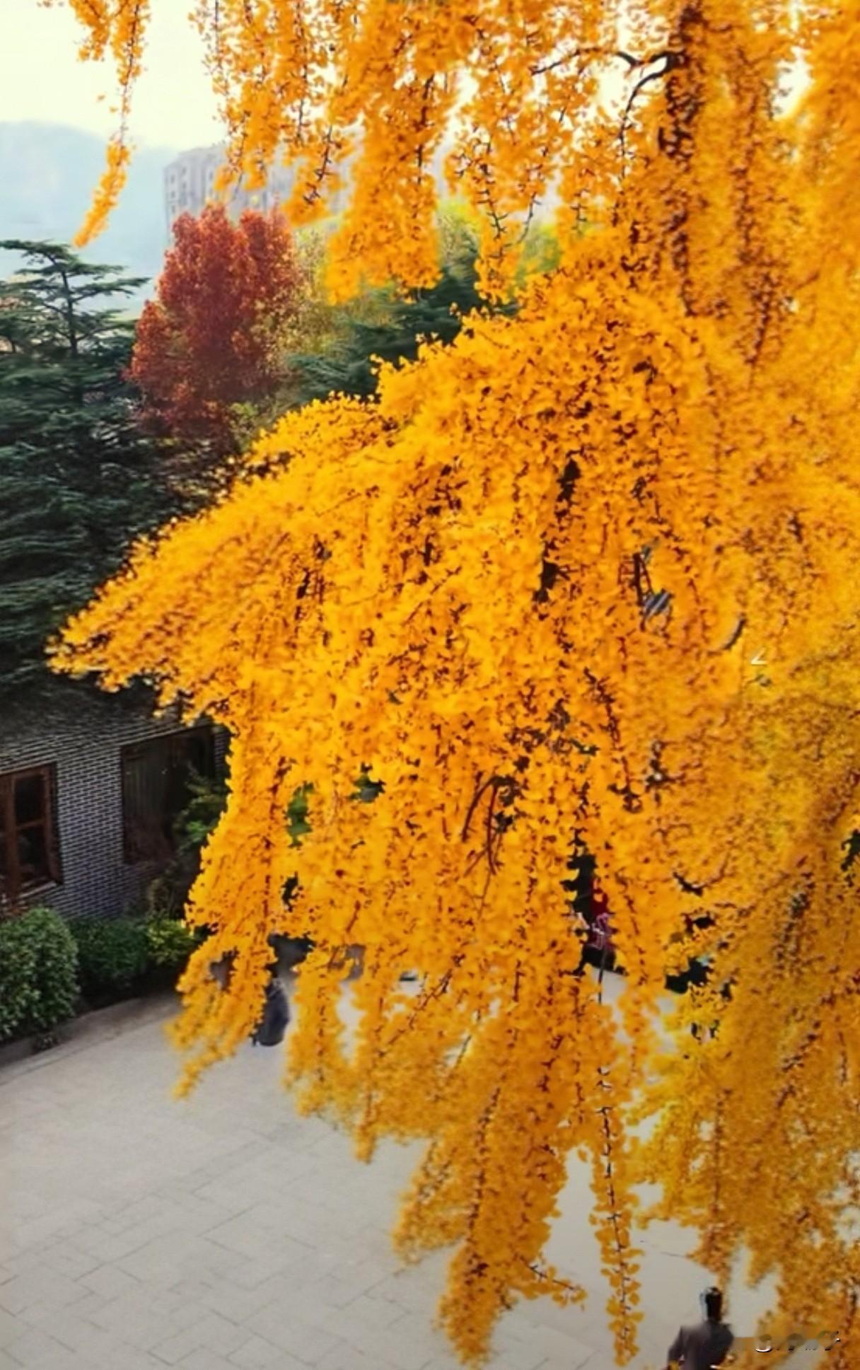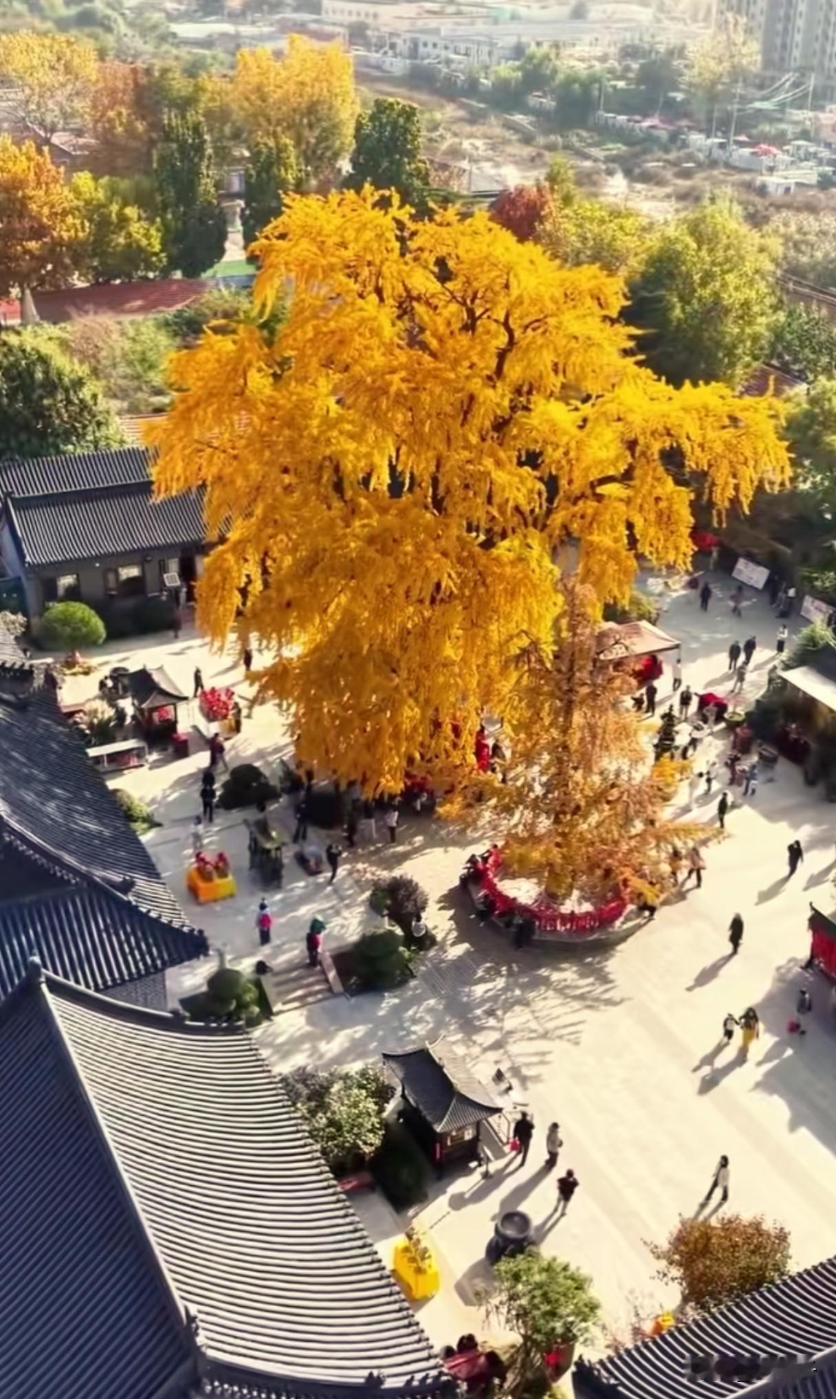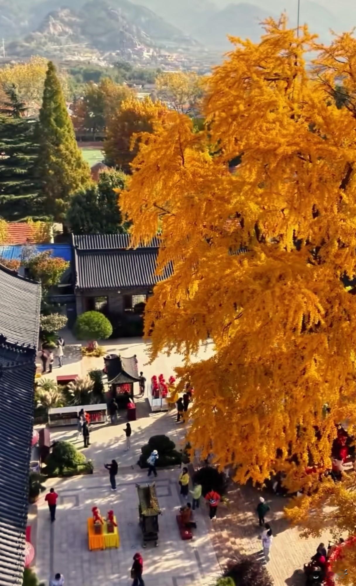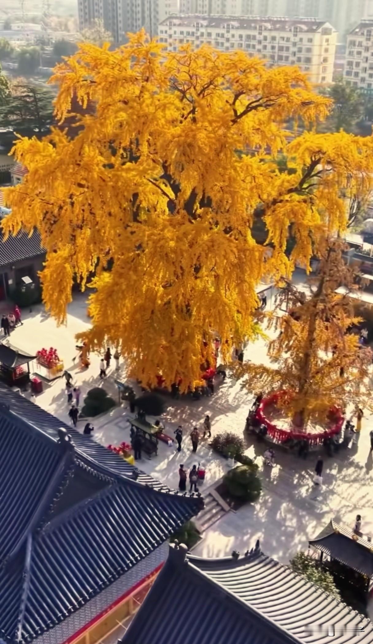 唯美千年古银杏树风采这是青岛法海寺的古银杏树,树龄1600岁,每到秋末冬初,银杏叶子金黄金黄的,非常漂亮,也引来很多游客前来观看。千年古银杏树风采