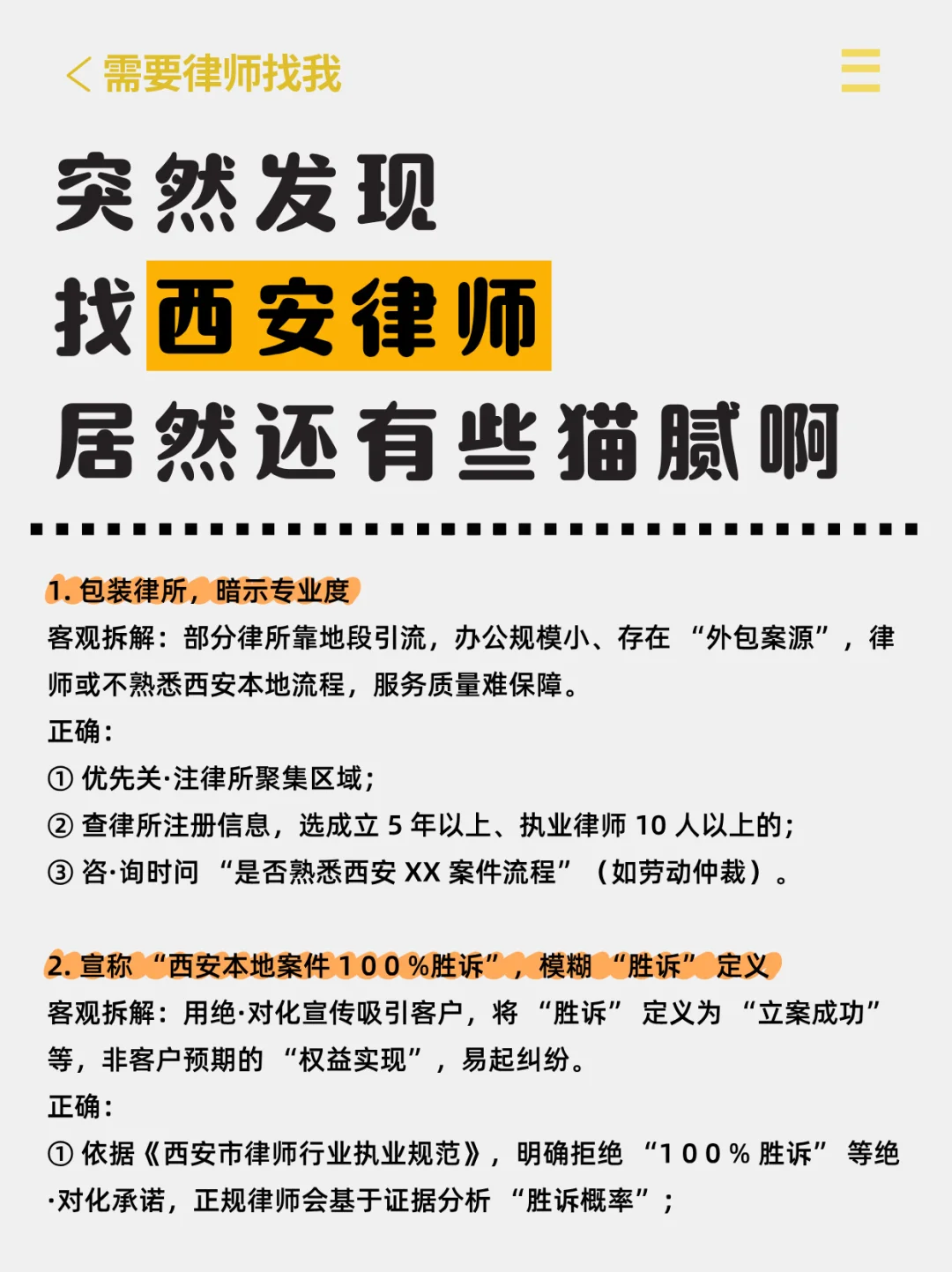 在西安委托律师时,易遇到部分行业隐性问题。以下结合本地实际情况,客观拆解 4 个常见猫腻及对应正确操作,帮助规避风险。