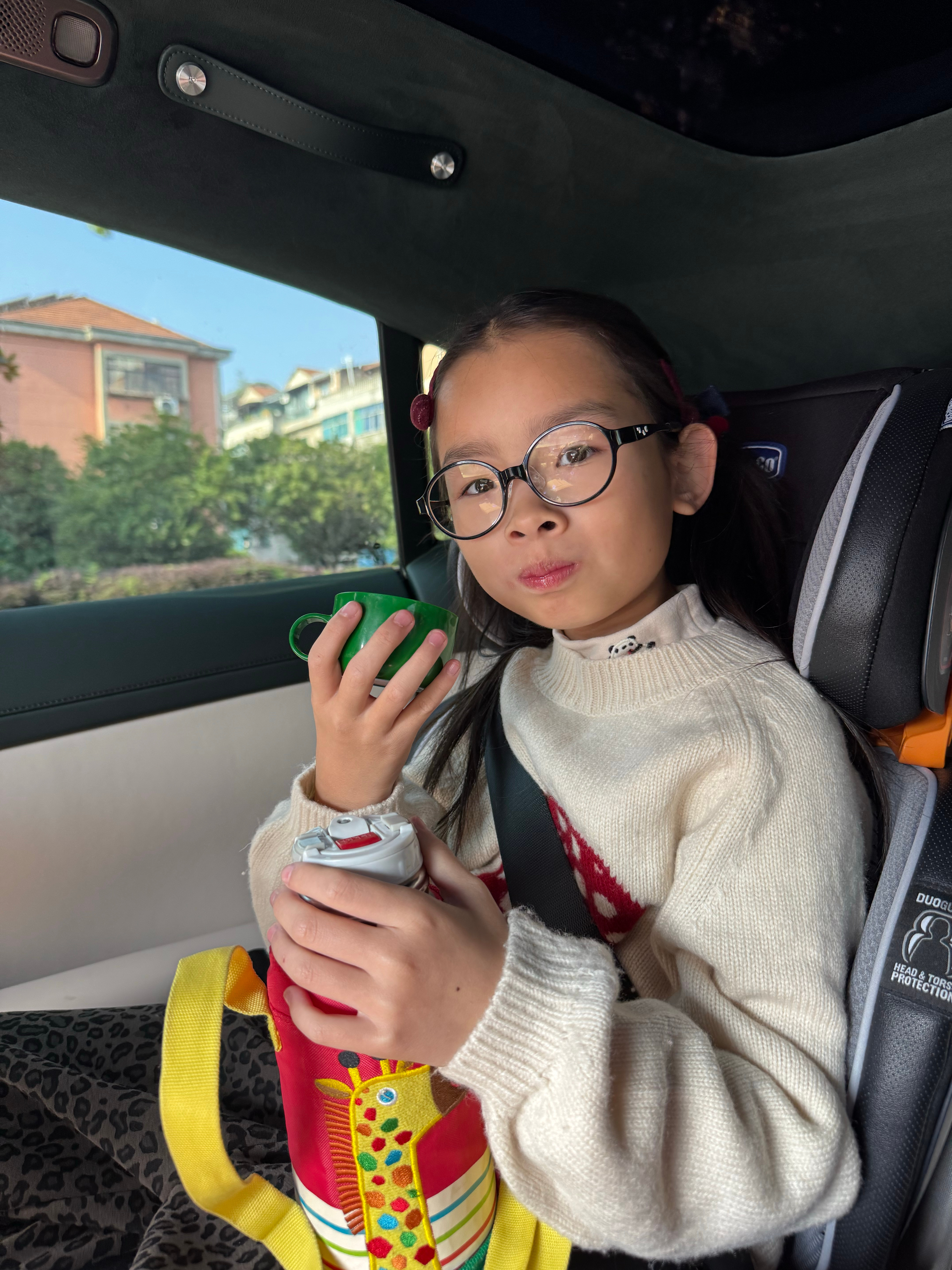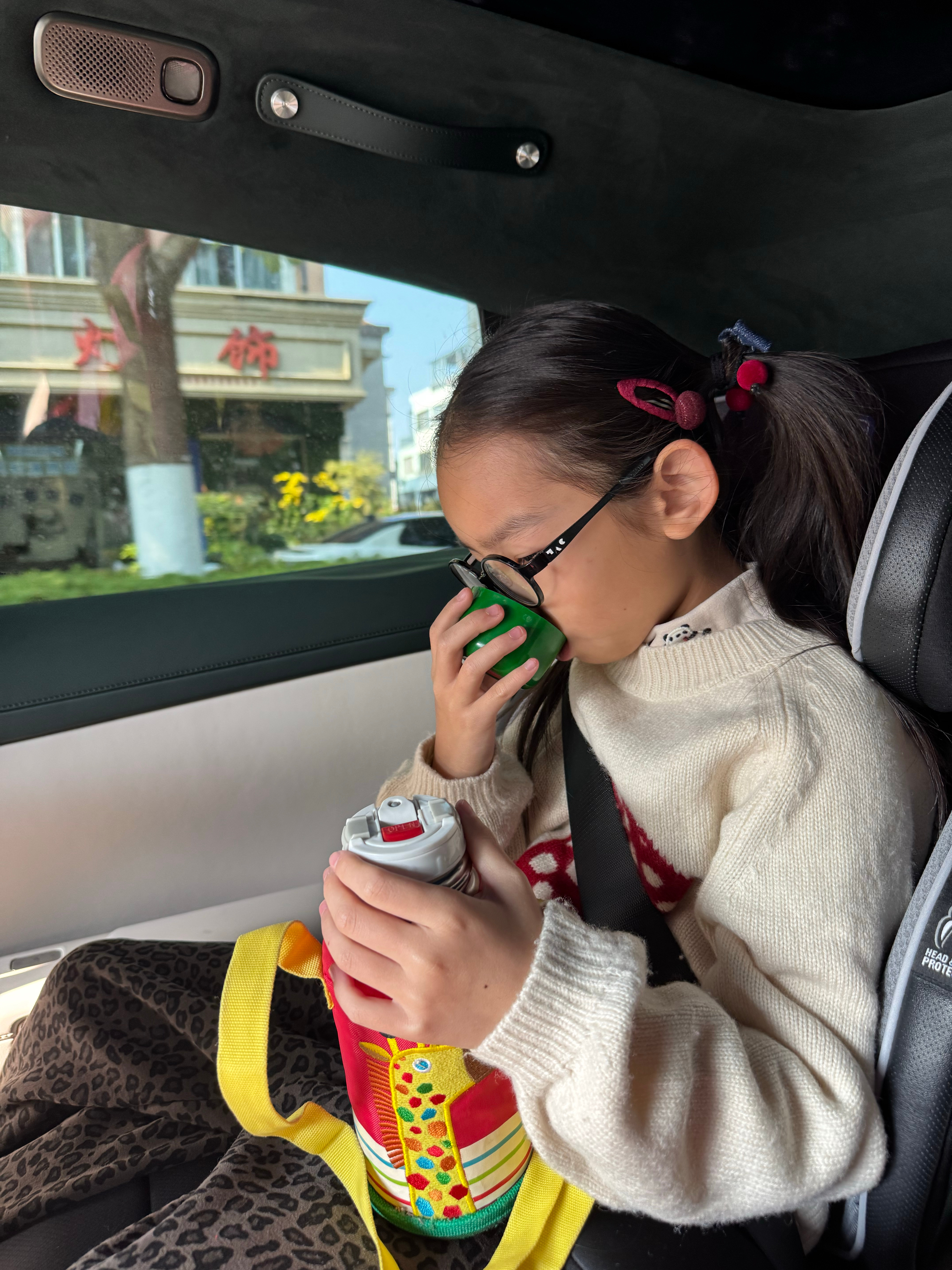 出发啦出发啦安姐日常在用的可背保温杯落在筝坊了给她带了幼儿园时期的保温杯阿莫斯:你们带保温杯干啥?我:到了你就知道了,可以喝温温的水有多爽。阿莫斯:温温的水?没概念。我:那边矿泉水常温就是冰住的(唬他)阿莫斯:没概念没概念。阿莫斯这两天感冒了,这两天处于高峰期,一声不吭跟我们走,就是早上行李箱都拿不动,看他在那拖,看着好心疼,心疼行李箱,后来都是我拿的,日常10 几 kg 的行李箱我嘤嘤嘤,今天 30kg 的行李箱我轻松加随意,第一次提大行李箱放后备箱