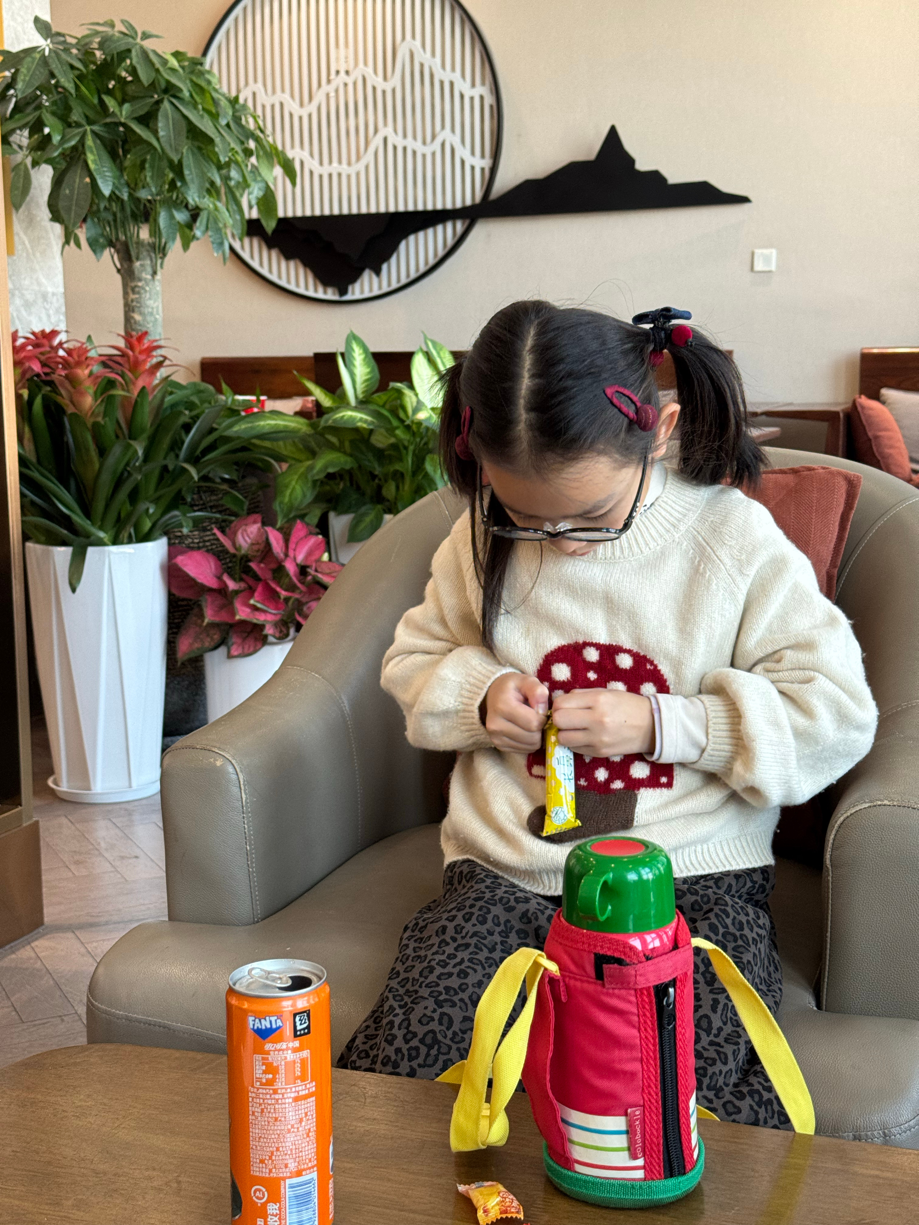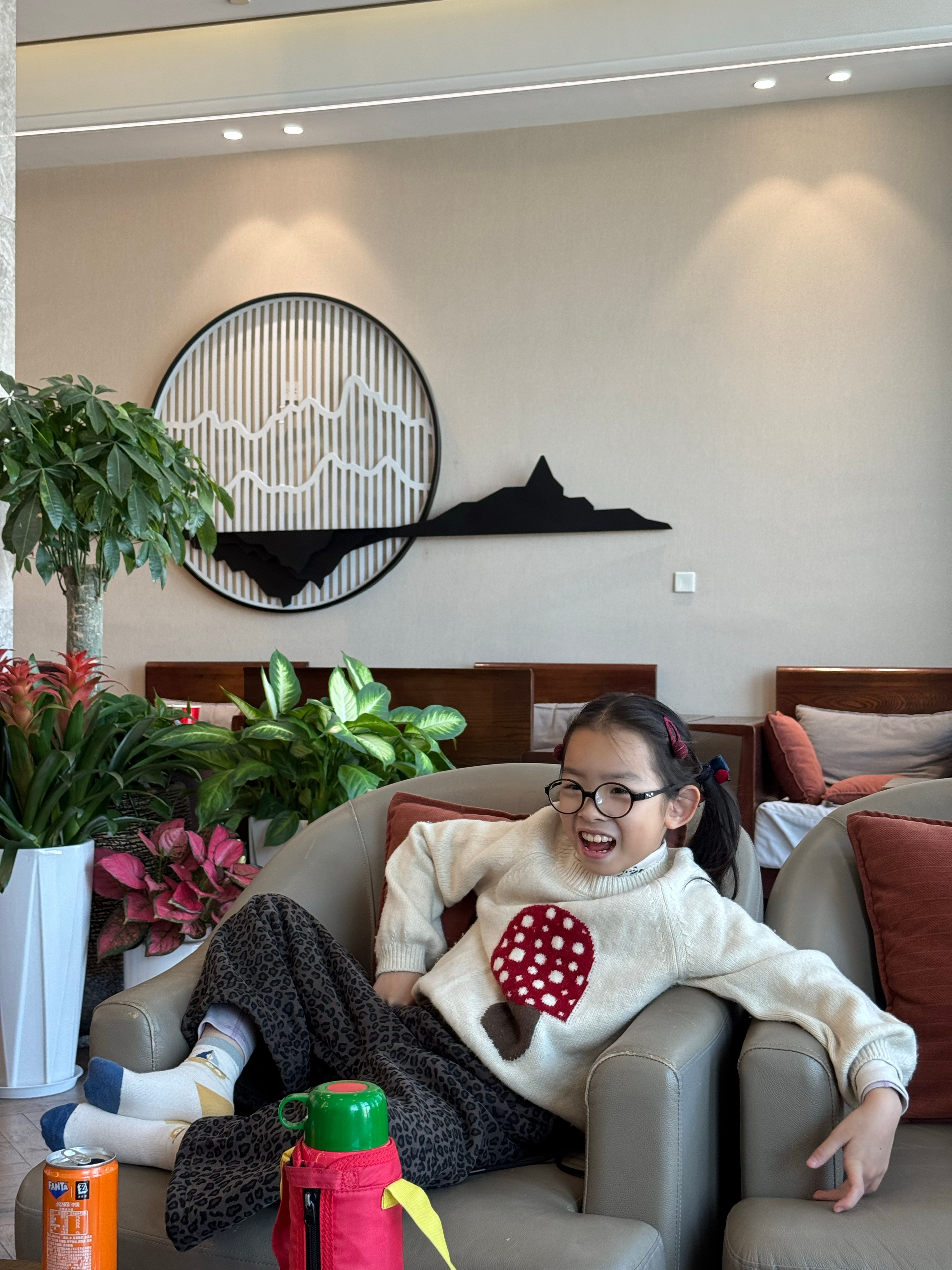 到机场了今天出发在 T3这个贵宾厅安姐第一次来休息室东西不多,但都是安姐爱吃的一进门我就和她说:这都是姐请你的,别客气安姐刚瘫在沙发上问:哈尔滨说中文吗?看来暑假英国这趟她还意犹未尽话说安安他们语数英老师应该评一个中国好教师团队这回秋假一点书面作业都没有英语数学昨天都在学校安排时间让他们做完了语文只有有思考类的作业安姐昨晚把古筝作业做了这会儿是“无业”一身轻