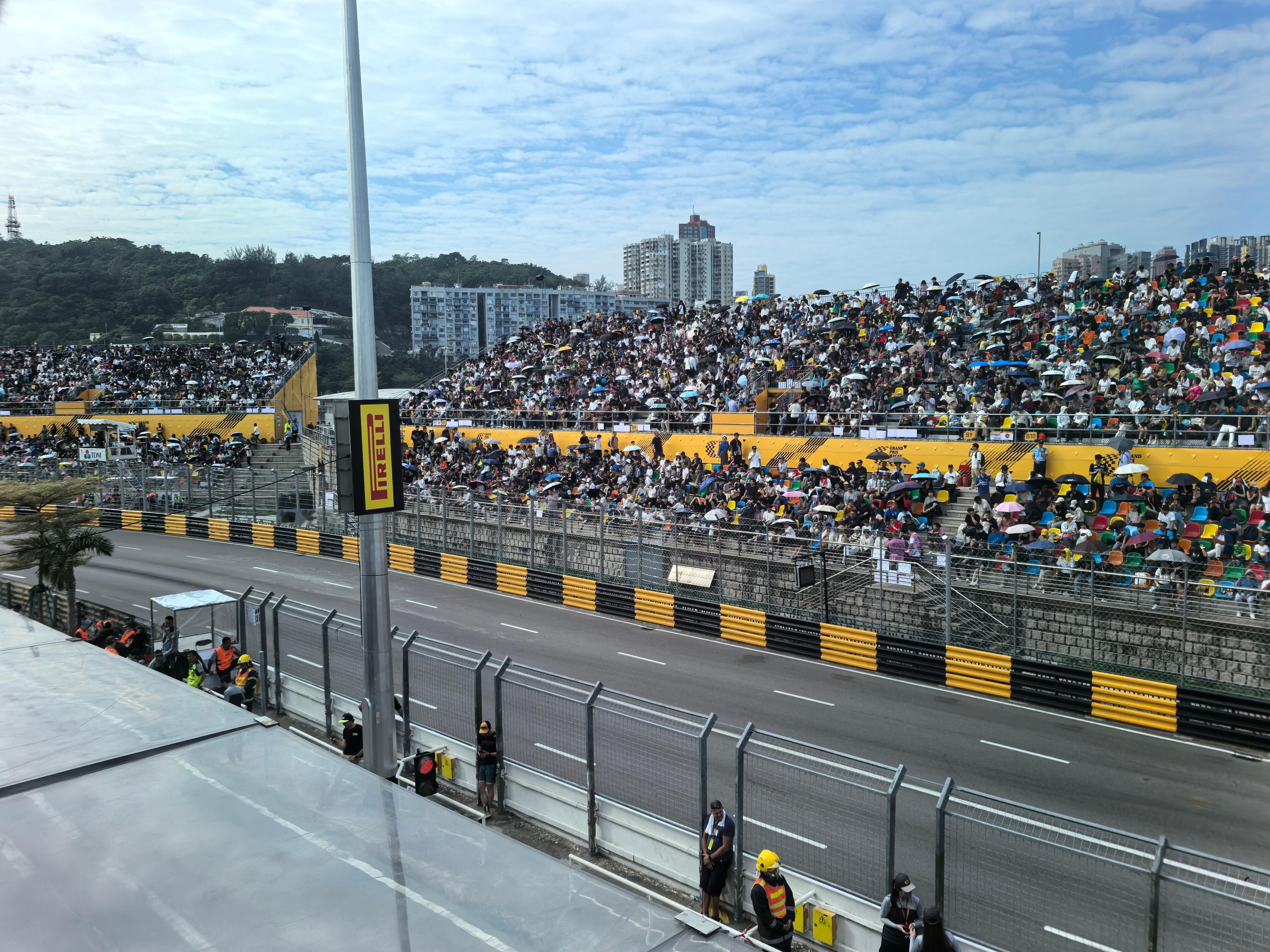 和 干了一碗牛杂,出发走东望洋赛道,肉眼看坡度比模拟器还有电视转播里陡多了,而