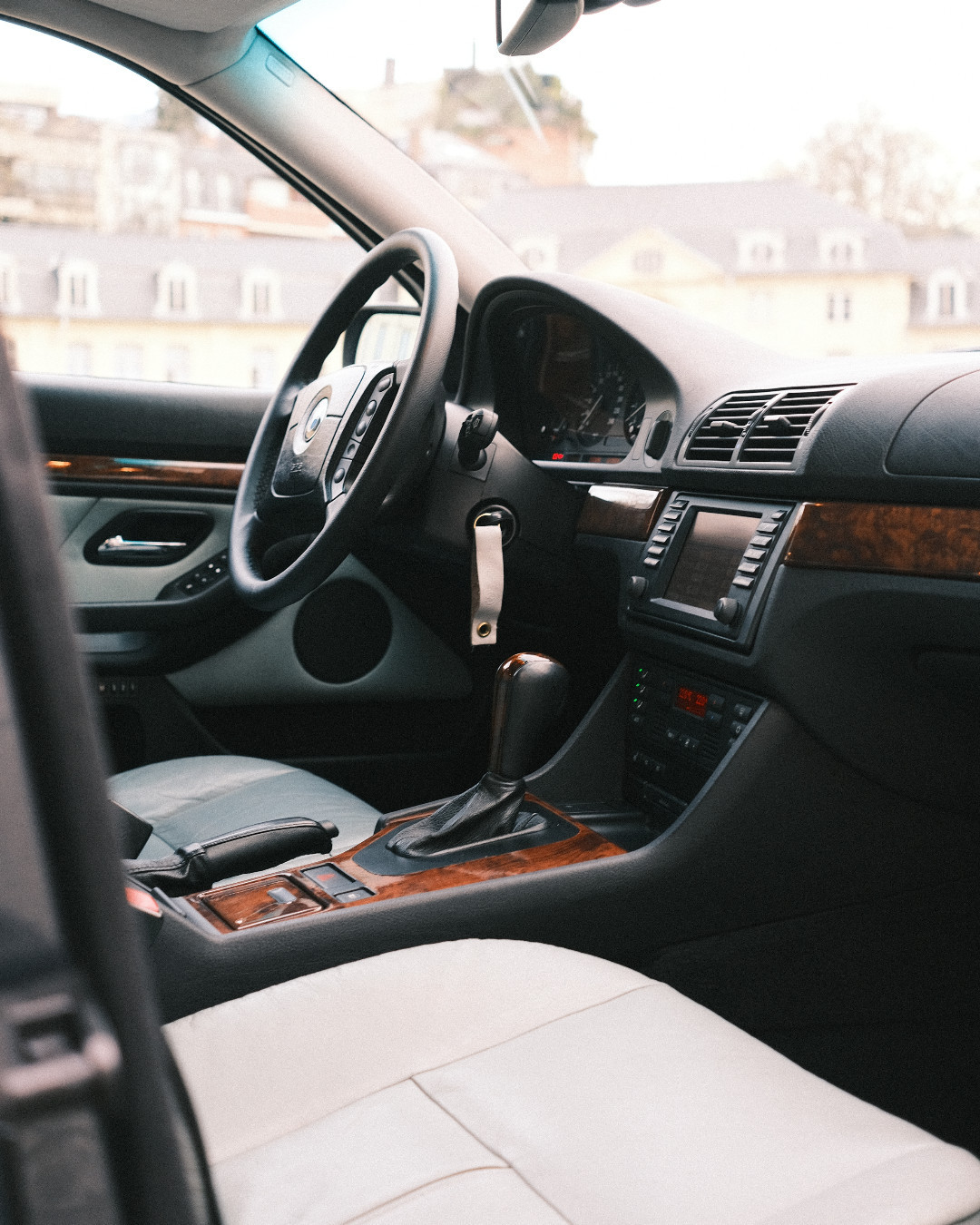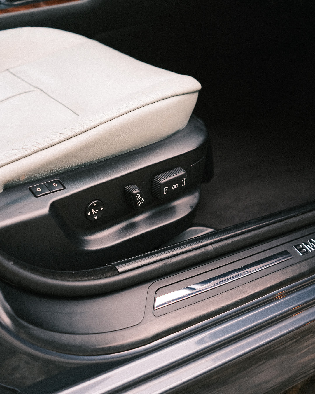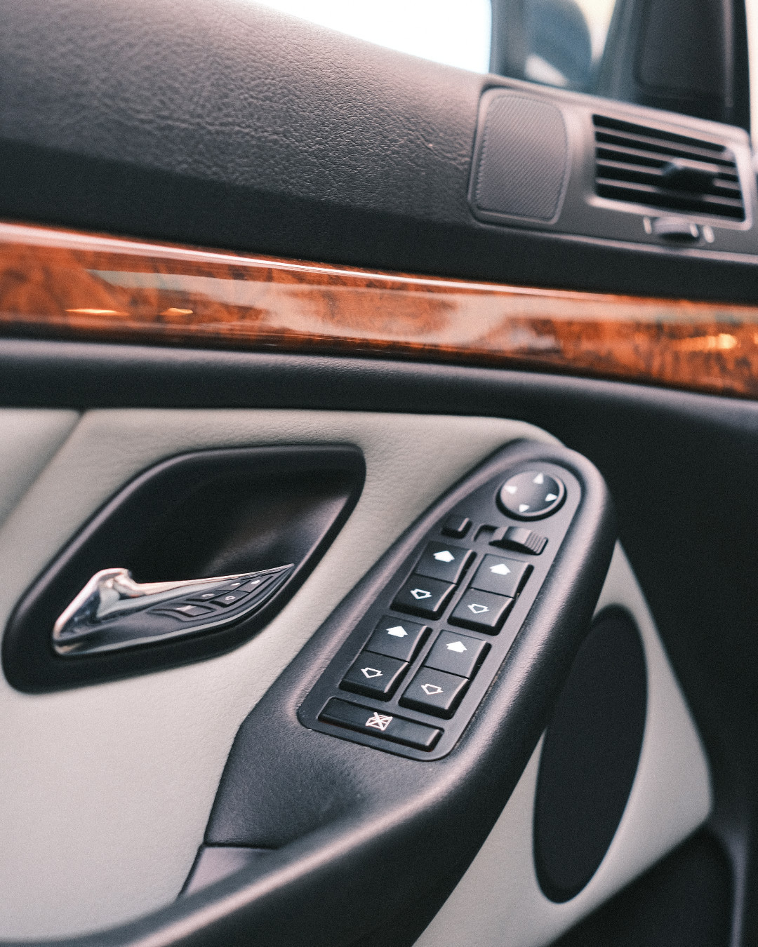 E39旅行版,国内罕见,北京好像有一台挂使馆牌照实车。单独开启的后挡风玻璃再也见不到了。玻璃开关从E34的中央档杆处移到门板上,但有反手操作之不便,到了E60后期款改成平置了。