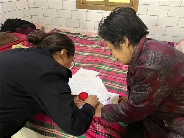 抵达后,民警俯身炕边,用通俗易懂的语言向老人及家属详细讲解业务办理流程,细致核对各项个人信息,耐心指导填写相关表格,并现场完成必要信息采集工作。
