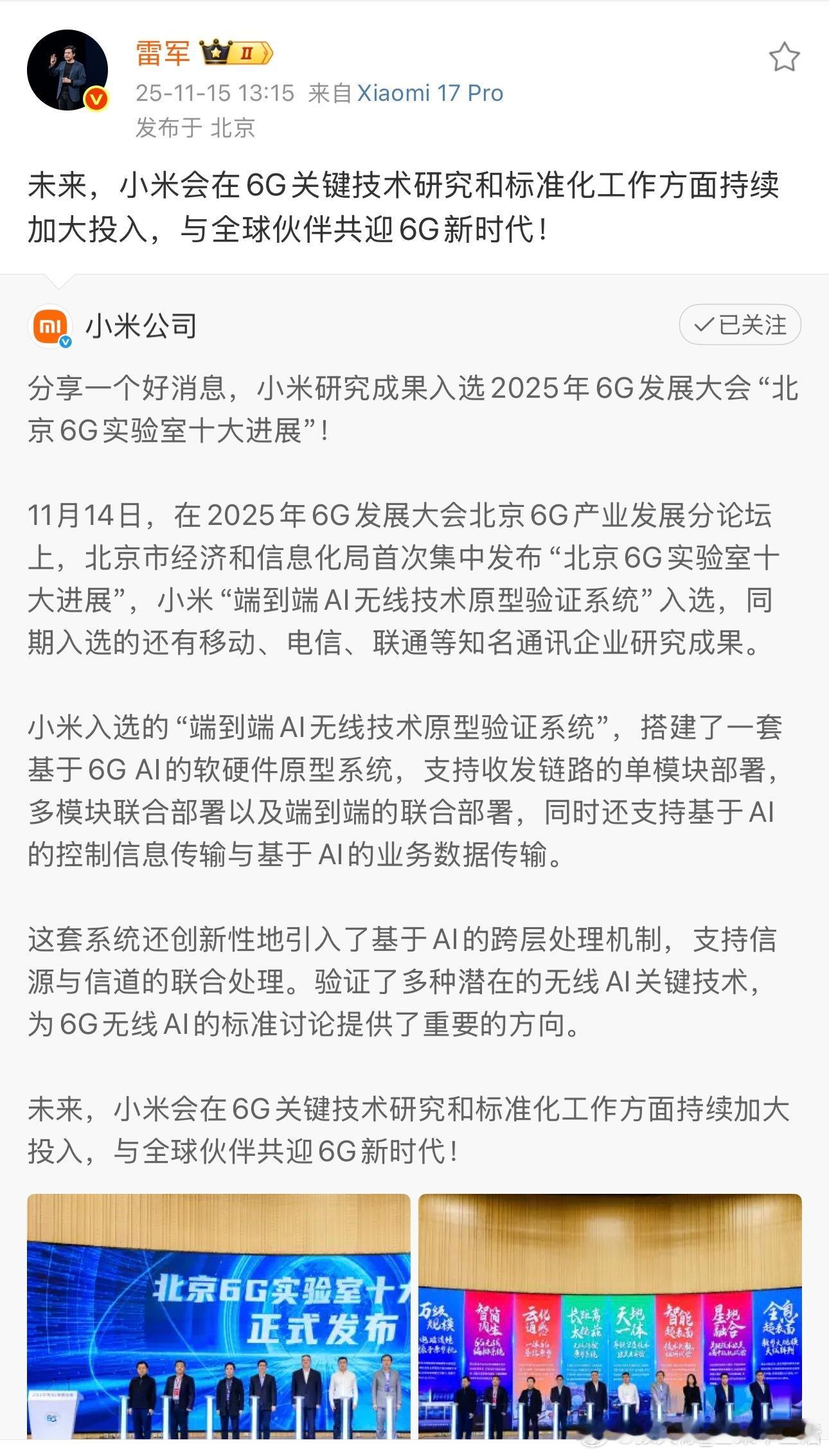 小米研究成果入选2025年6G发展大会“北京6G实验室十大进展”!