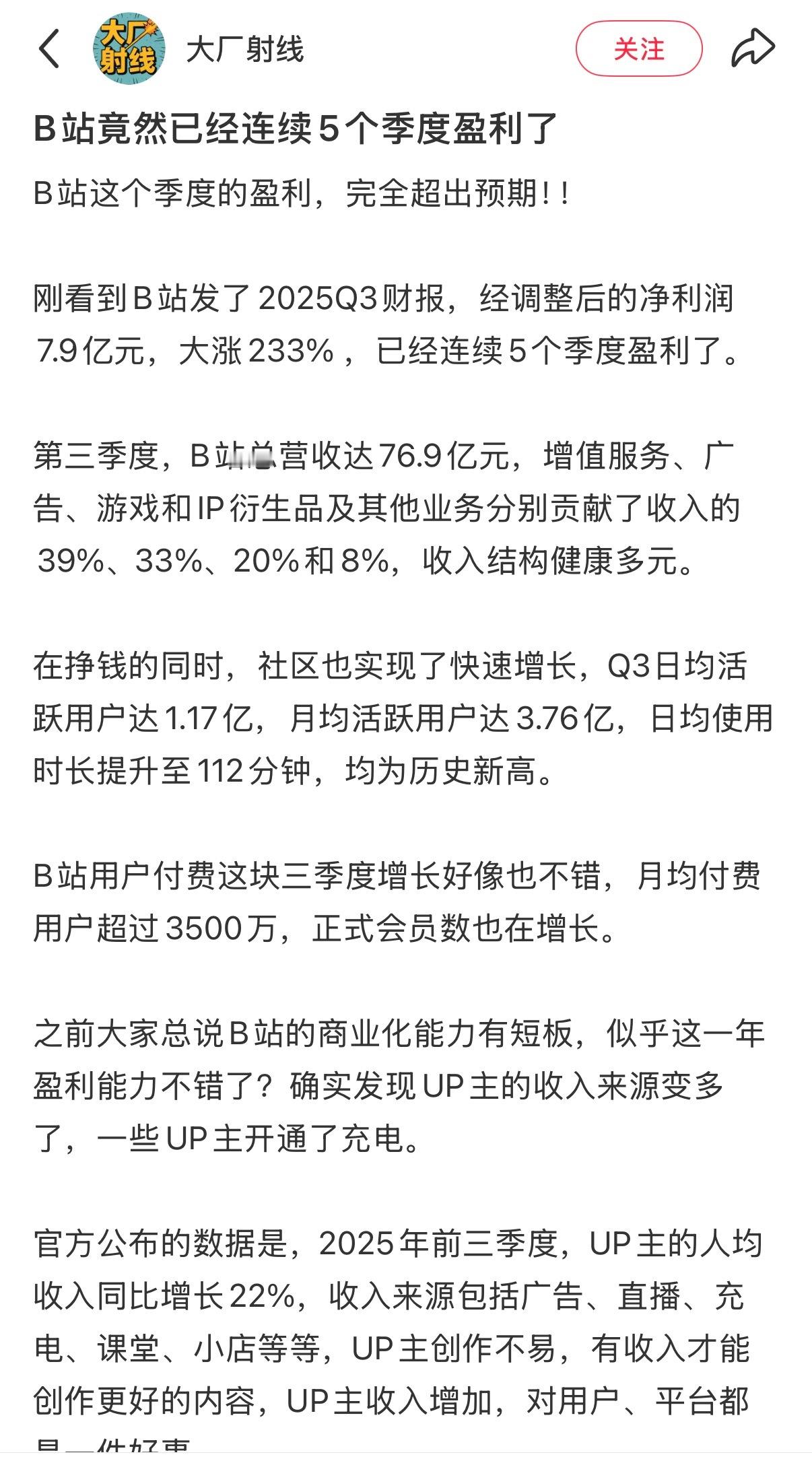 用B站感觉现在的内容没有以前好看了,以为越来越不行了,结果小破站竟然连续5个季度盈利