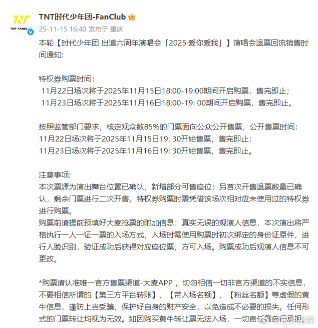 时代少年团退票回流通知,新增了部分可售座位。都来抢票吧,期待演唱会见面!!