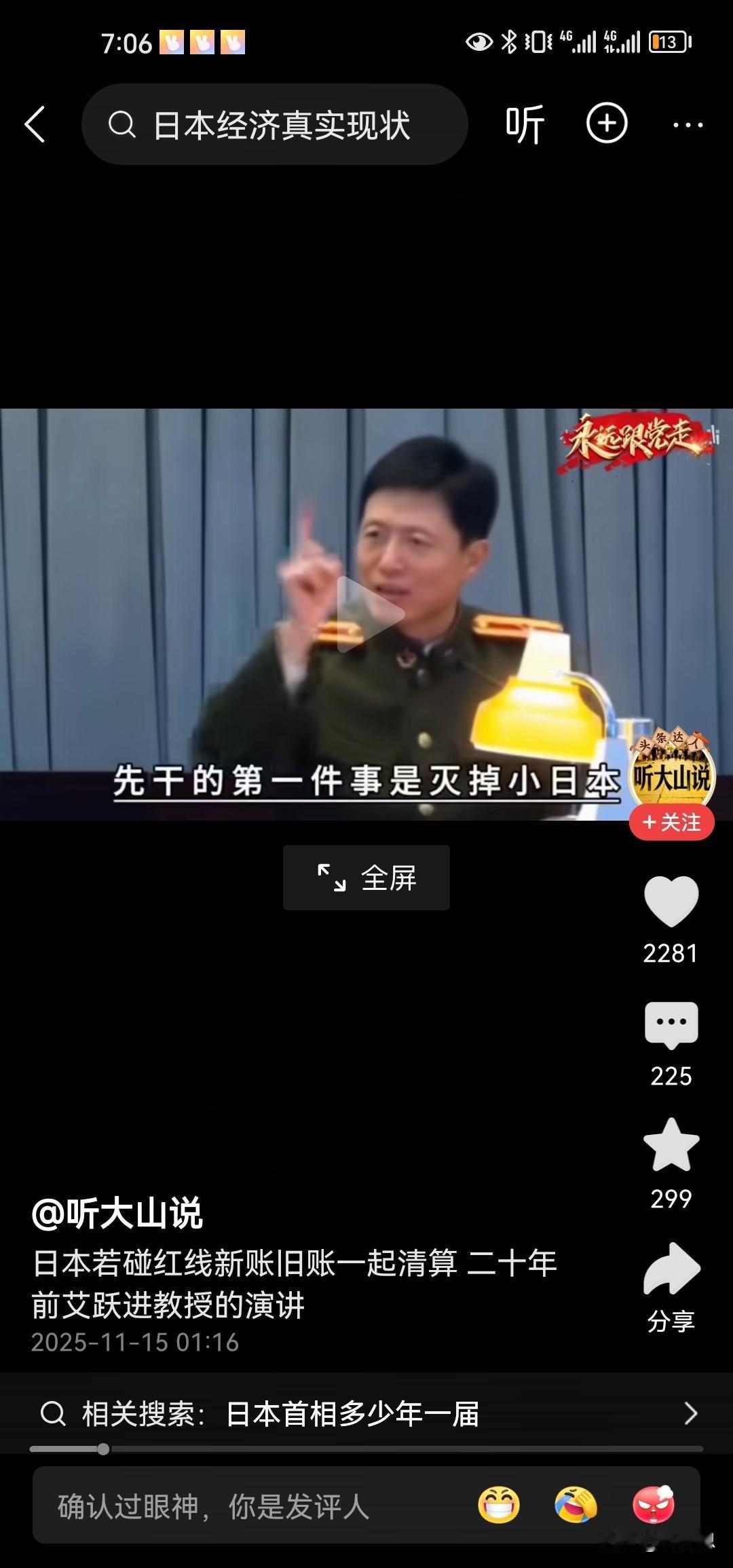艾跃进教授当年说的很对,中华民族要富强的第1件事要灭掉小日本。为什么要灭掉小日本?因为小日本的军国主义思想还在,天皇还在(一个小日本也竟敢称皇,应该是王才对),法统还在,战犯没有收到处理。现在是不是,他们就跳出来了?只要日本军国主义思想还在,没有所谓的中日世代友好,根本就不不存在,只有把日本的军国主义清除,把他们驯服,才能成为所谓的中日友好,最好是让他们成为中国的一个省一个部分。