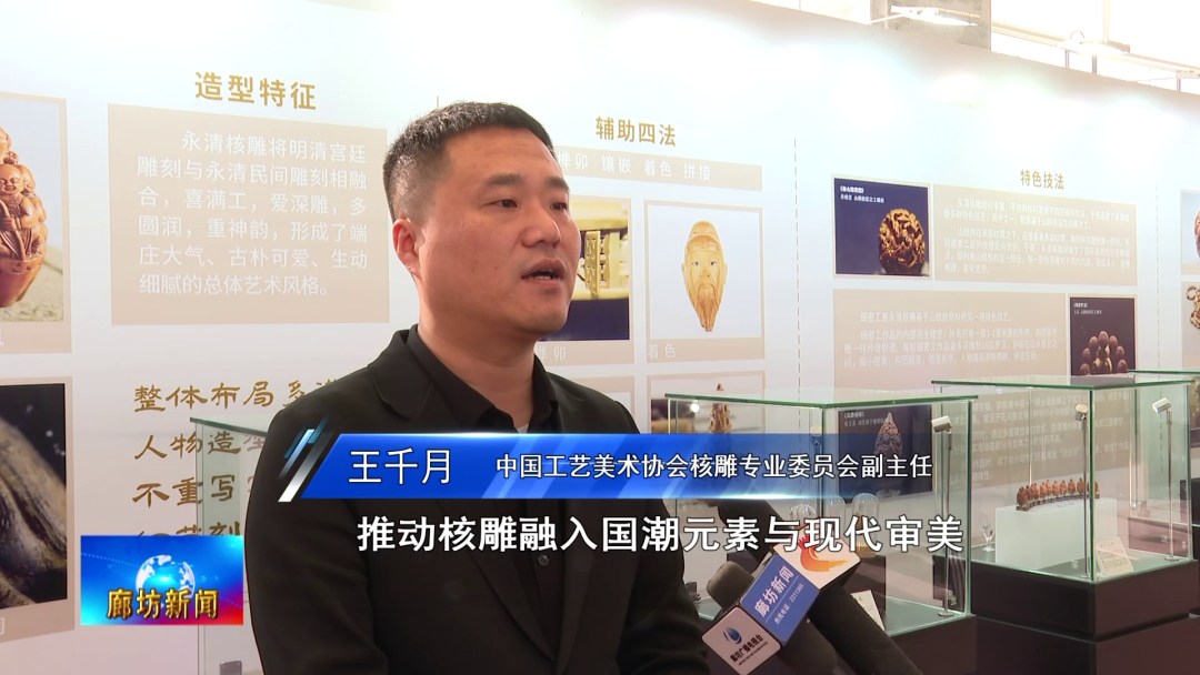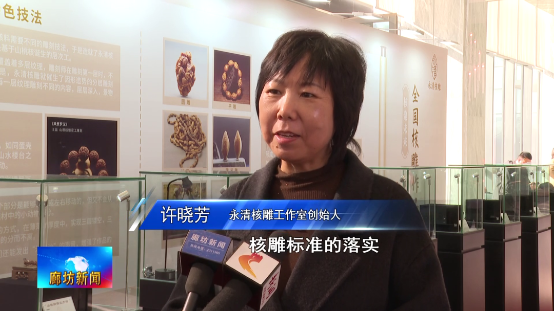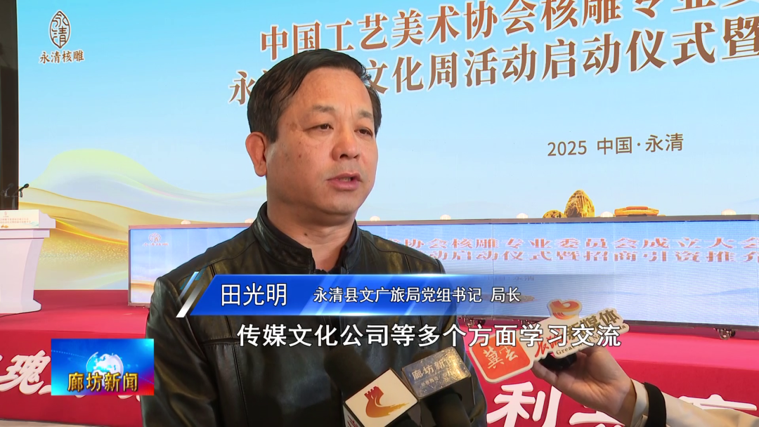 永清县文广旅局党组书记、局长田光明:为了促进核雕产业高质量的发展,一个是抓好人才的培养,我们想这是发展的根本。我们将从这个核雕从业人员(着手),组织他们与众多的高校、传媒文化公司等多个方面学习交流,以此来提高核雕从业人员文化素养和专业技能水平。另一方面我们还要抓好业态的培养,我们将整合域内2000余家核雕工厂、手工作坊、个人工作室以及众多的电商企业,打造统一对外平台,形成全链条的发展格局。再有就是我们要推动融合发展,积极做好核雕+文旅+物流+电商+AI这几篇文章,以融合促发展。