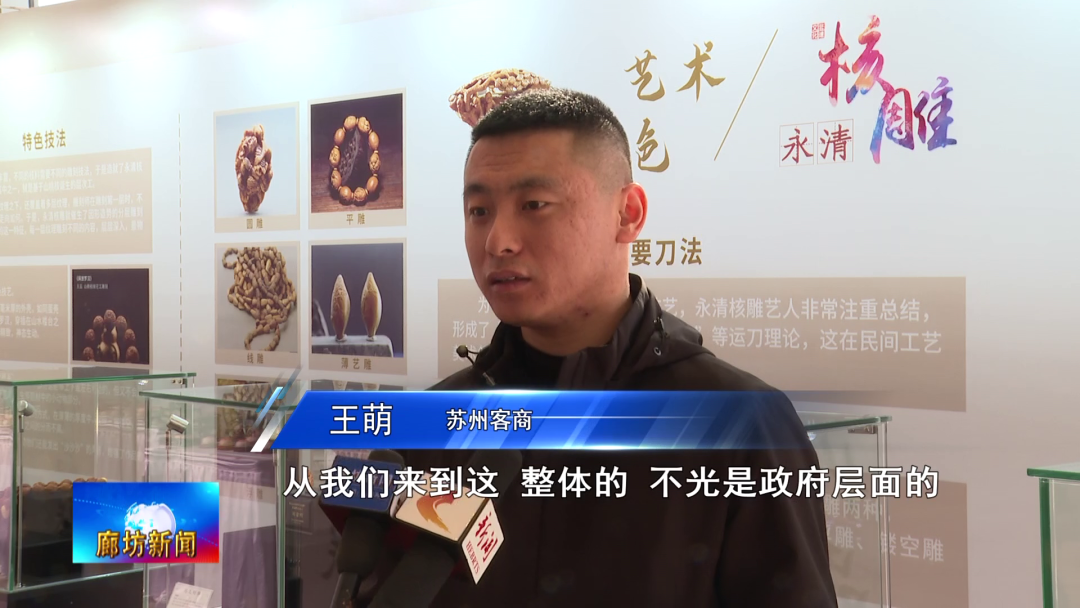 苏州客商王萌:从我们来到这,整体的,不光是政府层面的,还是说对接的商户,让我们看到了永清核雕发展的决心跟信心。已经在我们合作的规划范围之内了,包括有一些产品跟作品,是打算放在河北这边进行交流跟沟通,把我们的一些产品放在永清这边,去进行生产,然后去进行销售。