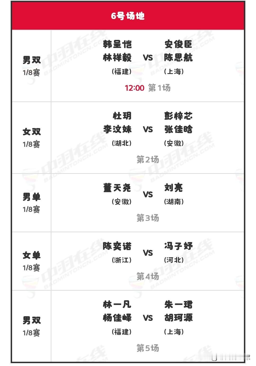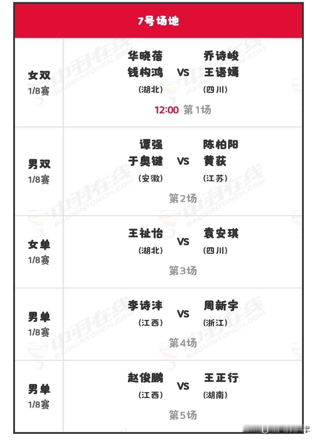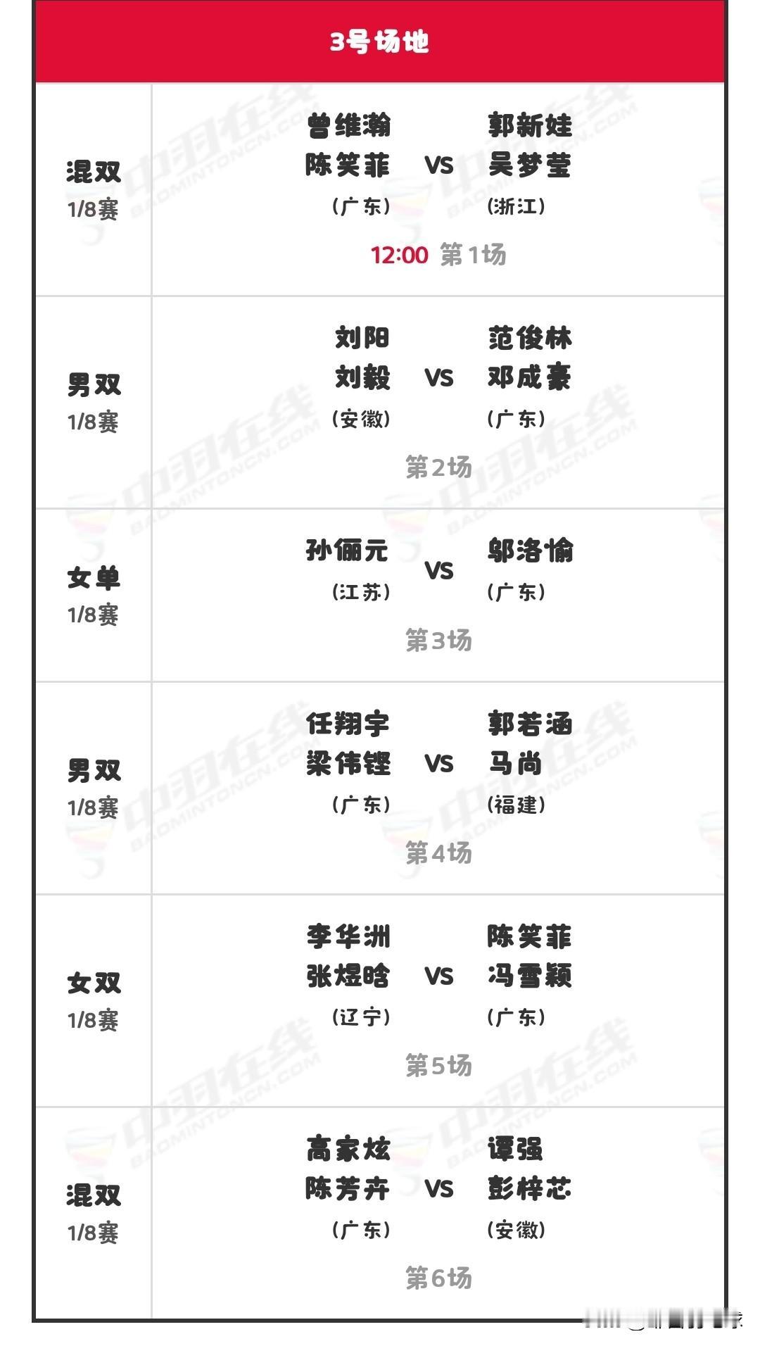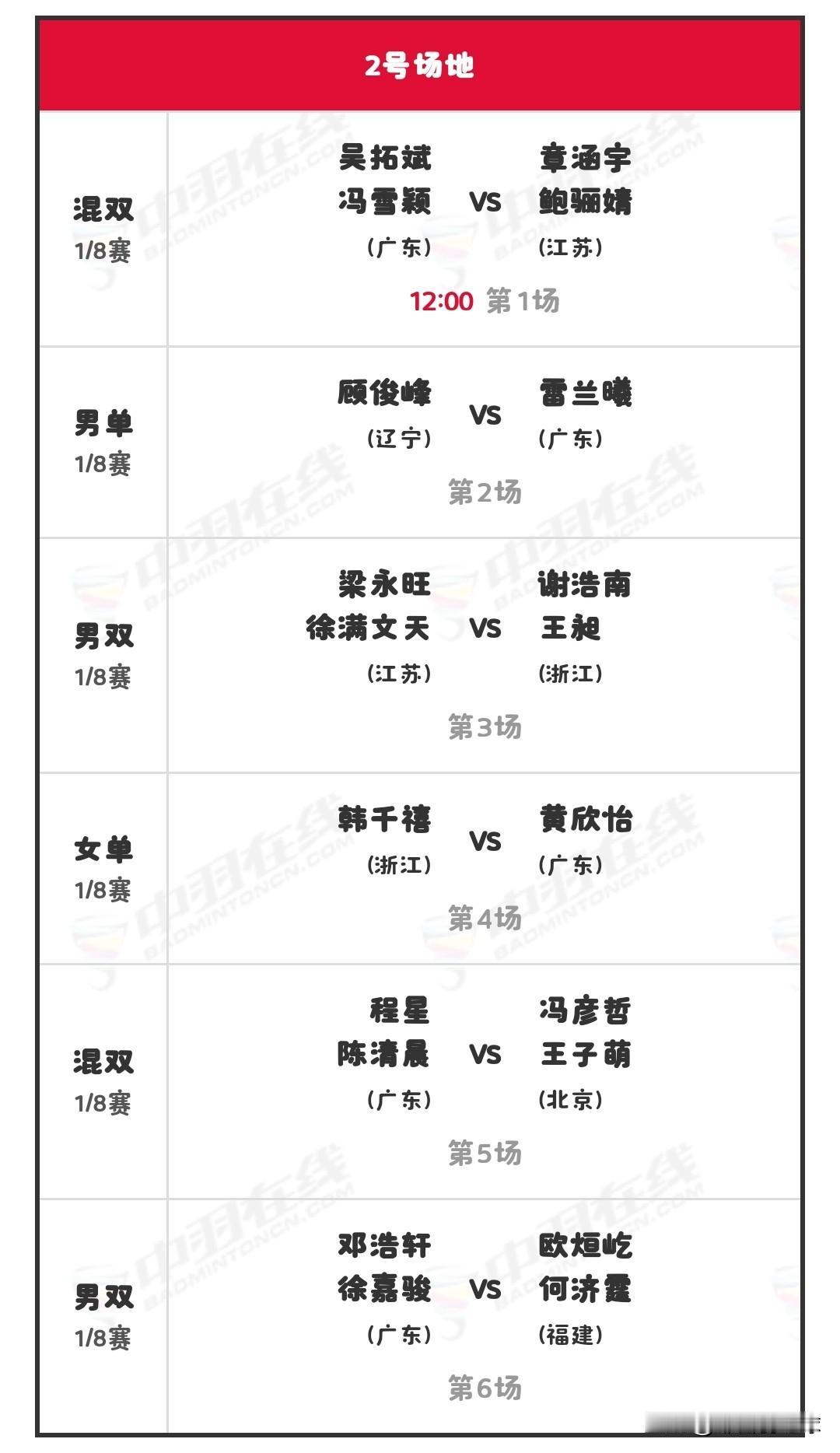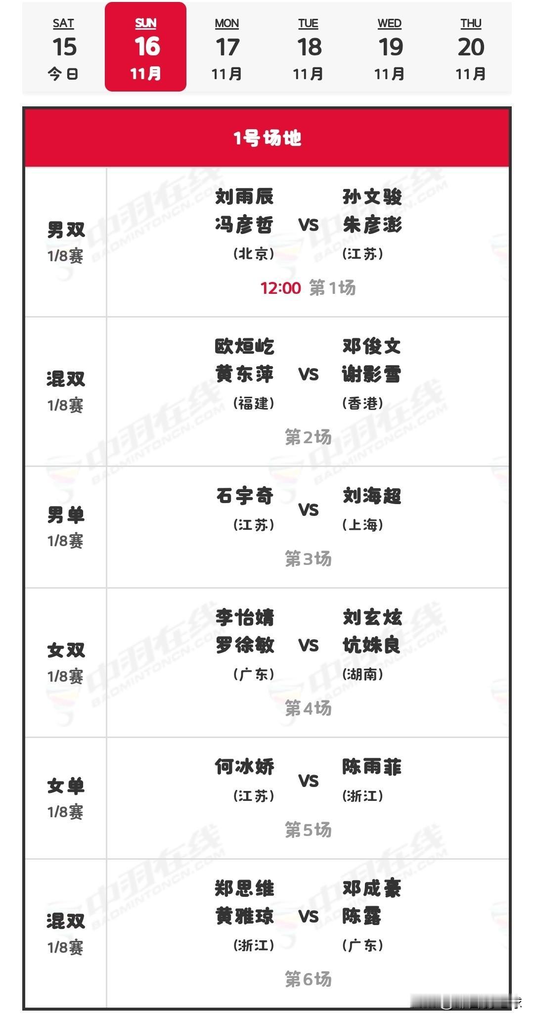 11月16日全运会羽毛球单项赛1/8决赛对阵安排 今日,首轮全部比赛刚刚落下帷