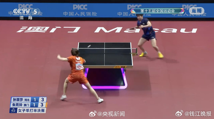【】全运会乒乓球成年组女单半决赛,黑龙江队王曼昱4比0战胜山东队陈梦挺进决赛