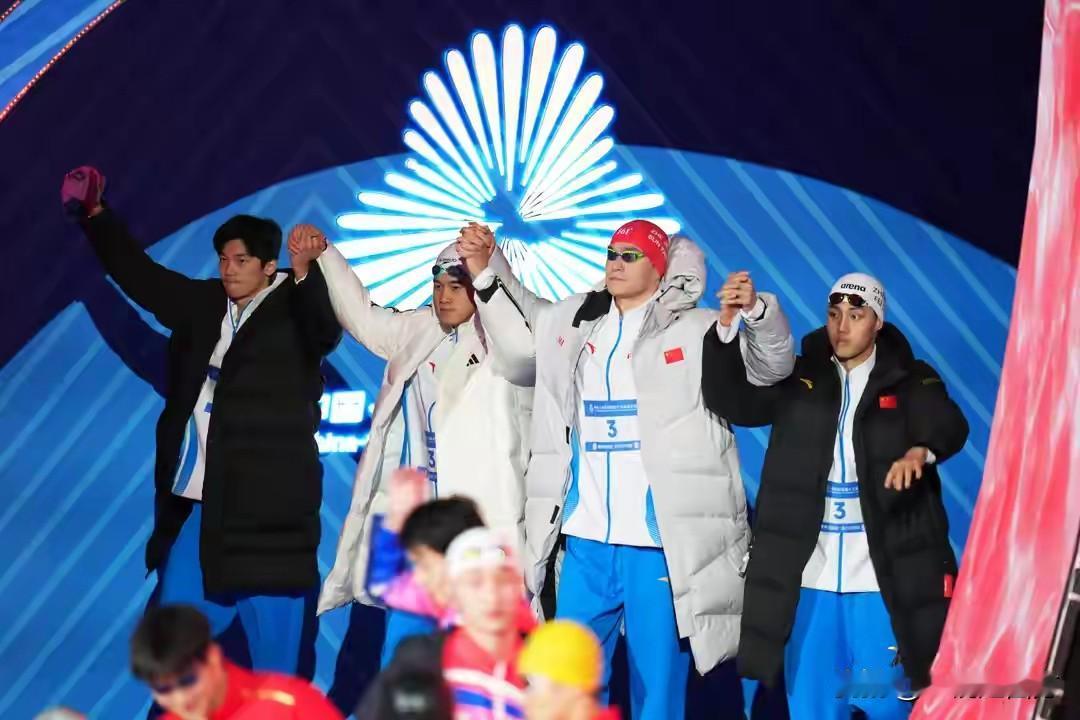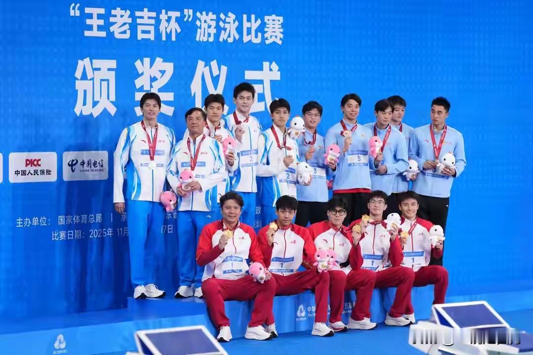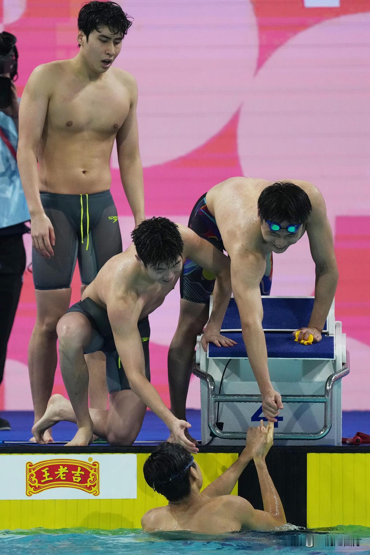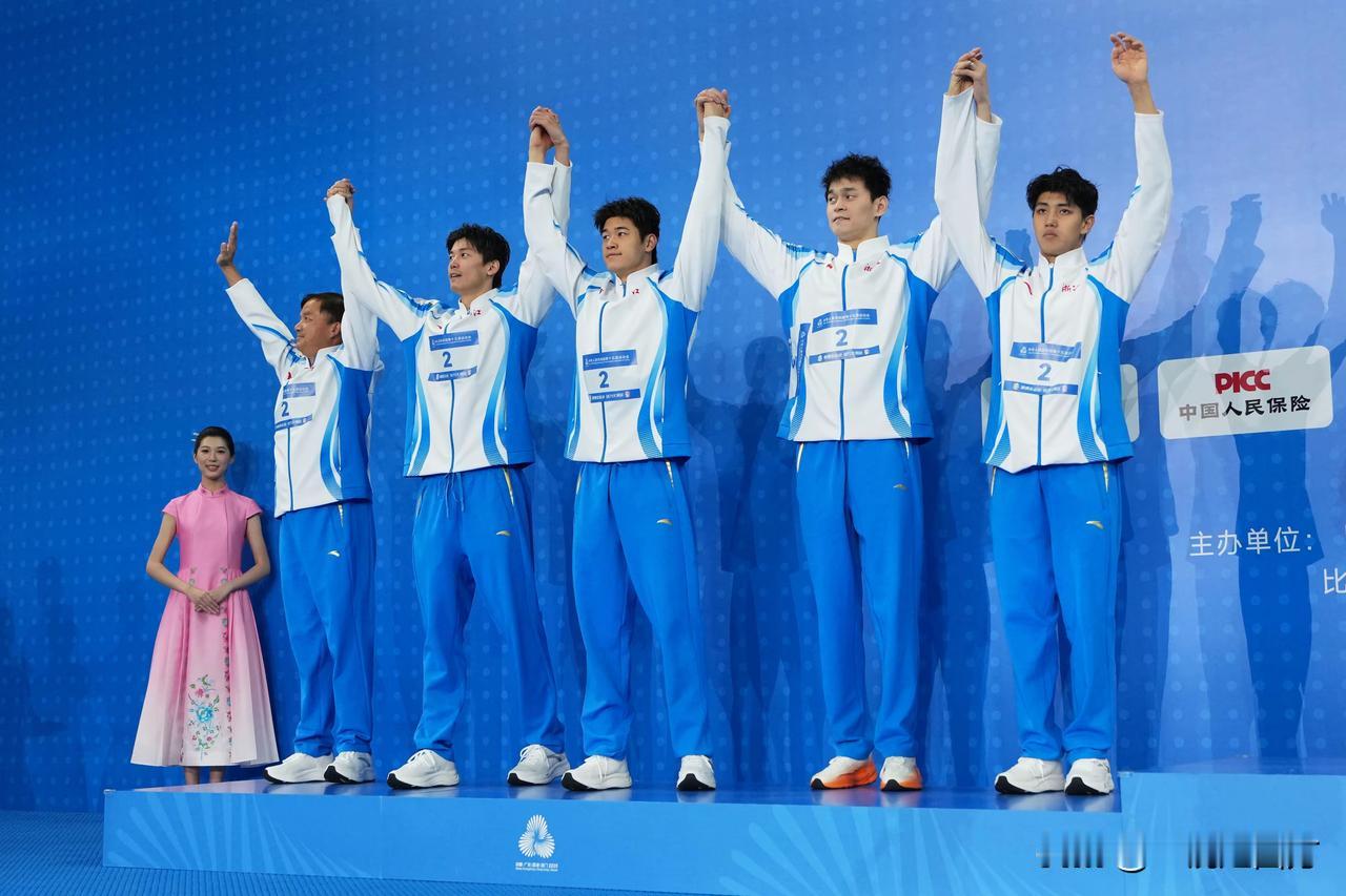 第十五届全运会游泳项目昨晚压轴进行的男子4×200米自由泳接力决赛,浙江队继女子4×100米自由泳接力决赛后,又一次遭山东队末棒绝杀,浙江队前三棒是费立纬、孙杨、潘展乐,山东队前三棒是刘培鑫、赵一朴、李易峰,潘展乐交棒给汪顺时以0.47秒的微弱优势保持领先,但山东队最后一棒张展硕是本届比赛三金得主,他展现出强大的实力,700米转身时以0.02秒微弱优势反超,最后50米继续扩大领先近一个身位,最终以1.38秒的优势率先触壁,以7分05秒36夺得金牌,张展硕也获得了本届全运会第四枚金牌,成就“四金王”,赛后,18岁的张展硕90度鞠躬向前辈汪顺握手致意,中国公安体育协会依靠最后一棒季新杰的强力冲刺获得铜牌。