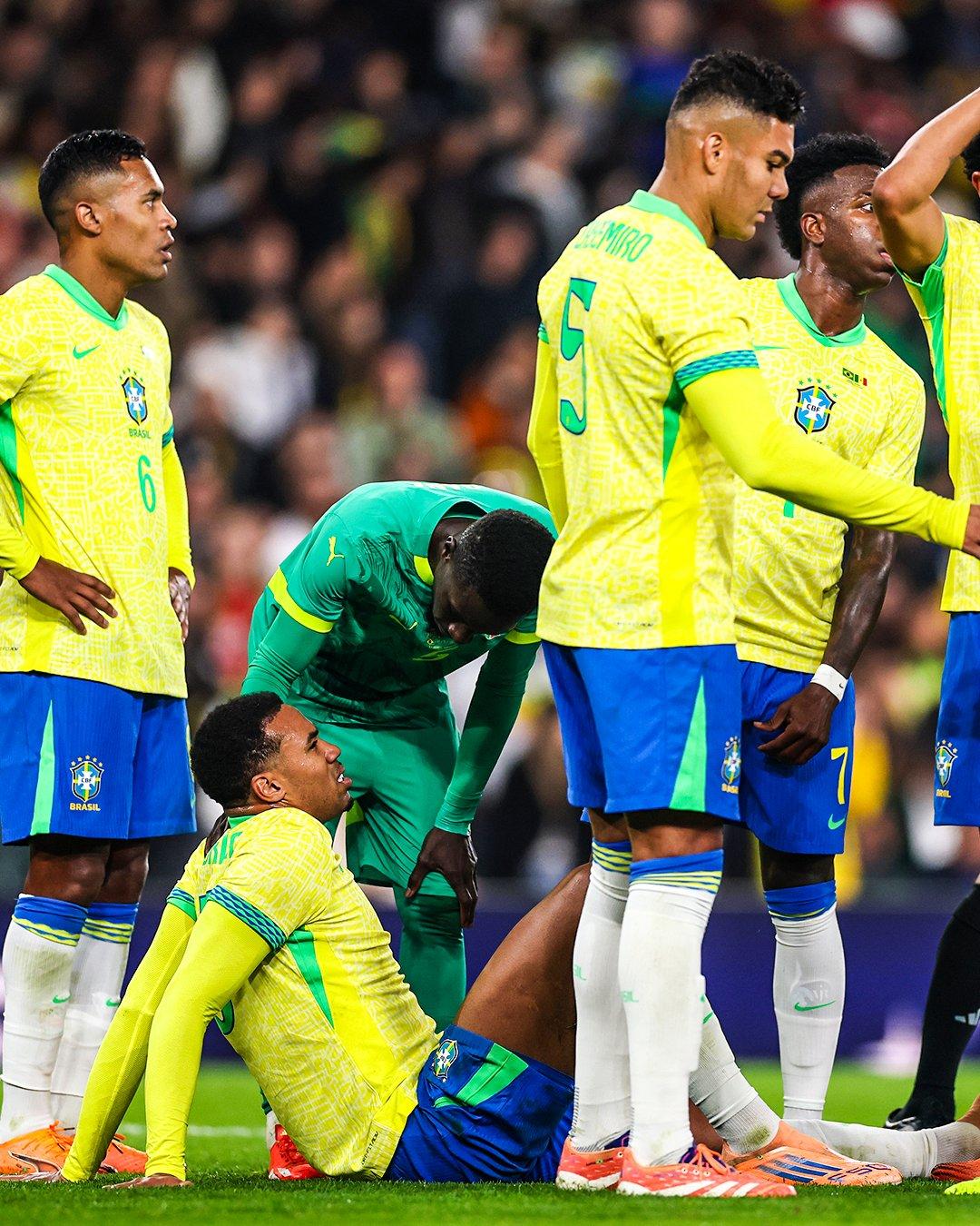 【枪迷心里苦】国际友谊赛,巴西在酋长球场2-0击败塞内加尔。第64分钟,阿森纳主力中卫加布里埃尔于因伤退场,引发枪迷担忧。 加布里埃尔在一次防守后出现右大腿内收肌不适,经场边治疗后无法坚持。巴西主帅安切洛蒂赛后确认,球员伤情具体严重程度尚不明朗,医疗团队将于16日进行详细检查。 下周末的英超,北伦敦德比将打响,加布里埃尔的受伤令阿森纳球迷的心里蒙上阴影。阿森纳