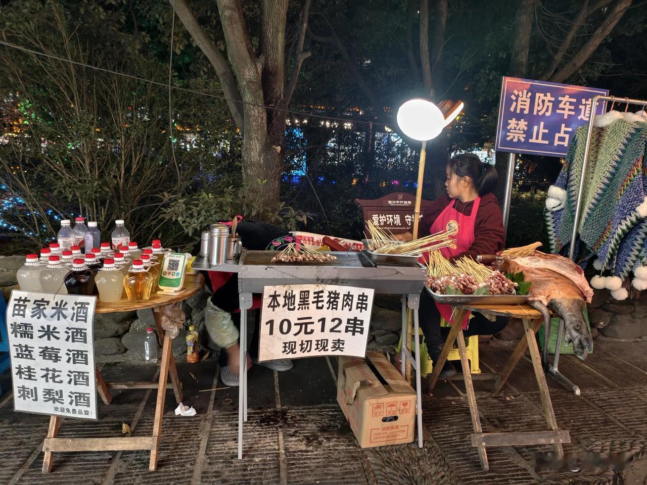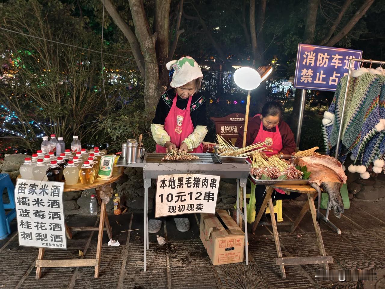 在西江千户苗寨,这个串确实不错:一是真材实料,有实物现场制作;二是价格统一,凡是经营者都摆着统一制作的10元12串的牌子;三是味道真的好。