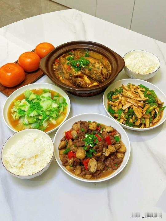 中等家庭的生活吧,四菜一汤,算是小康之家了