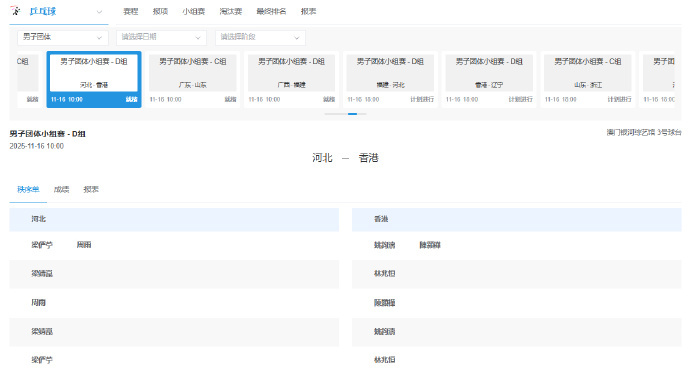 全运会乒乓球成年组男子团体D组,河北vs中国香港出场阵容梁俨苧/周雨vs姚钧涛/陈颢桦周雨vs陈颢桦梁俨苧vs林兆恒