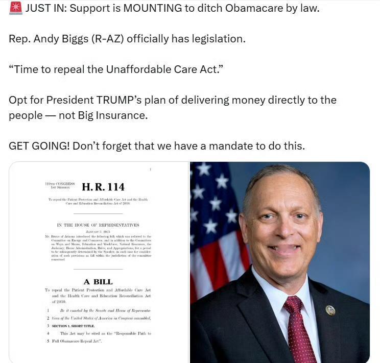 要求废除奥巴马医改法案的呼声日益高涨。 安迪·比格斯众议员(亚利桑那州共和党人)已正式提出立法。 是时候废除《平价医疗法案》了。 选择直接向民众发放资金的计划——而非大型保险公司。