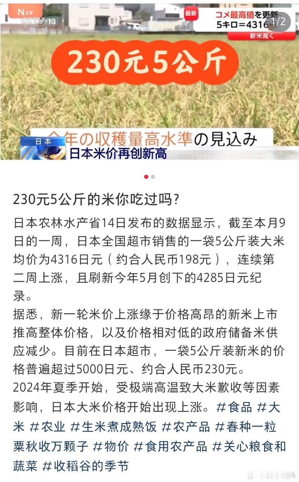 这日本的米价比猪肉价格都贵,小日子民众真的是饭都快吃不起了。