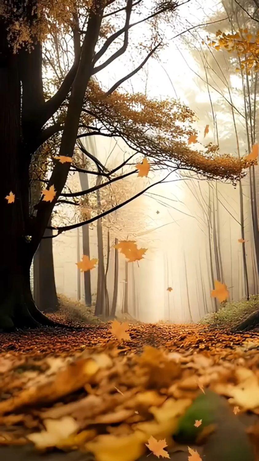 树叶落下的瞬间,你在想什么?会想起风穿过枝桠的轻响,像时光悄悄踮脚走过——一片叶从葱绿到金黄,最后带着整个夏天的记忆,轻轻吻过大地。