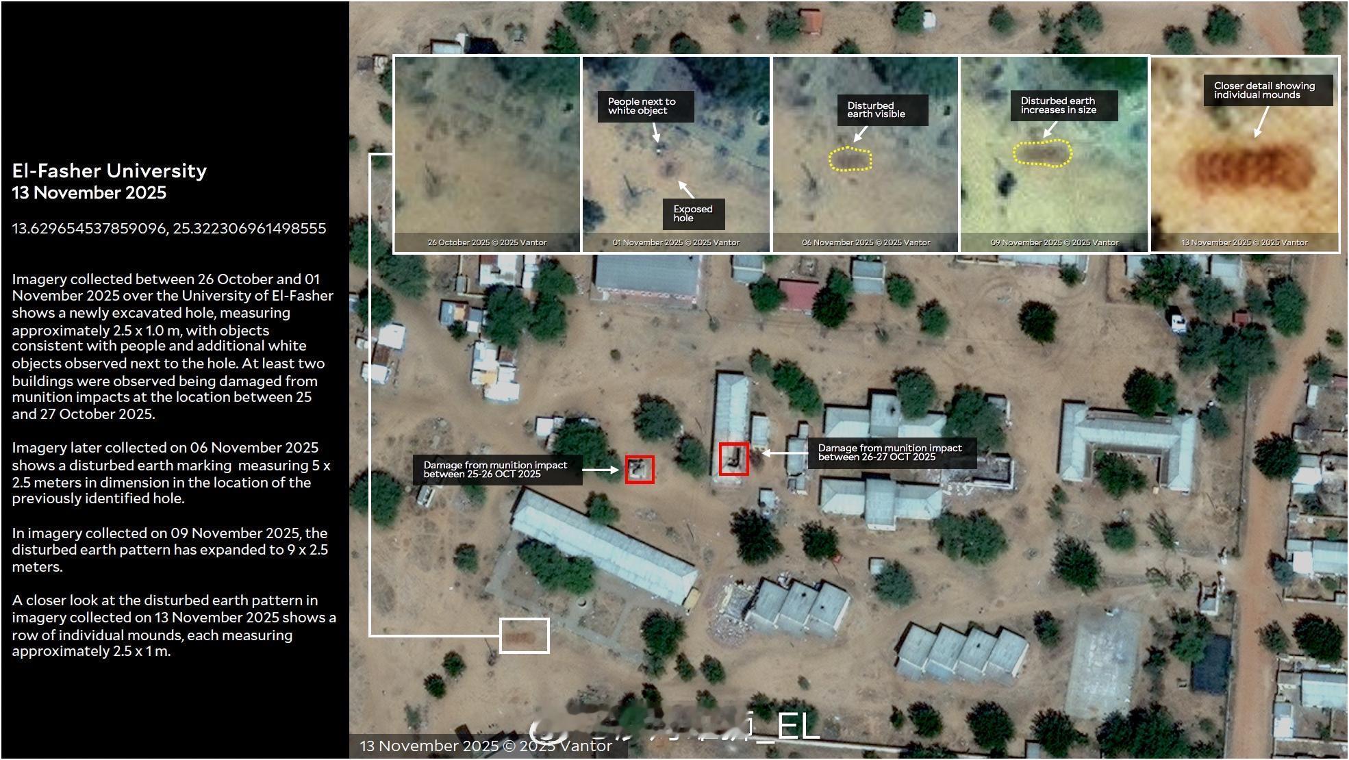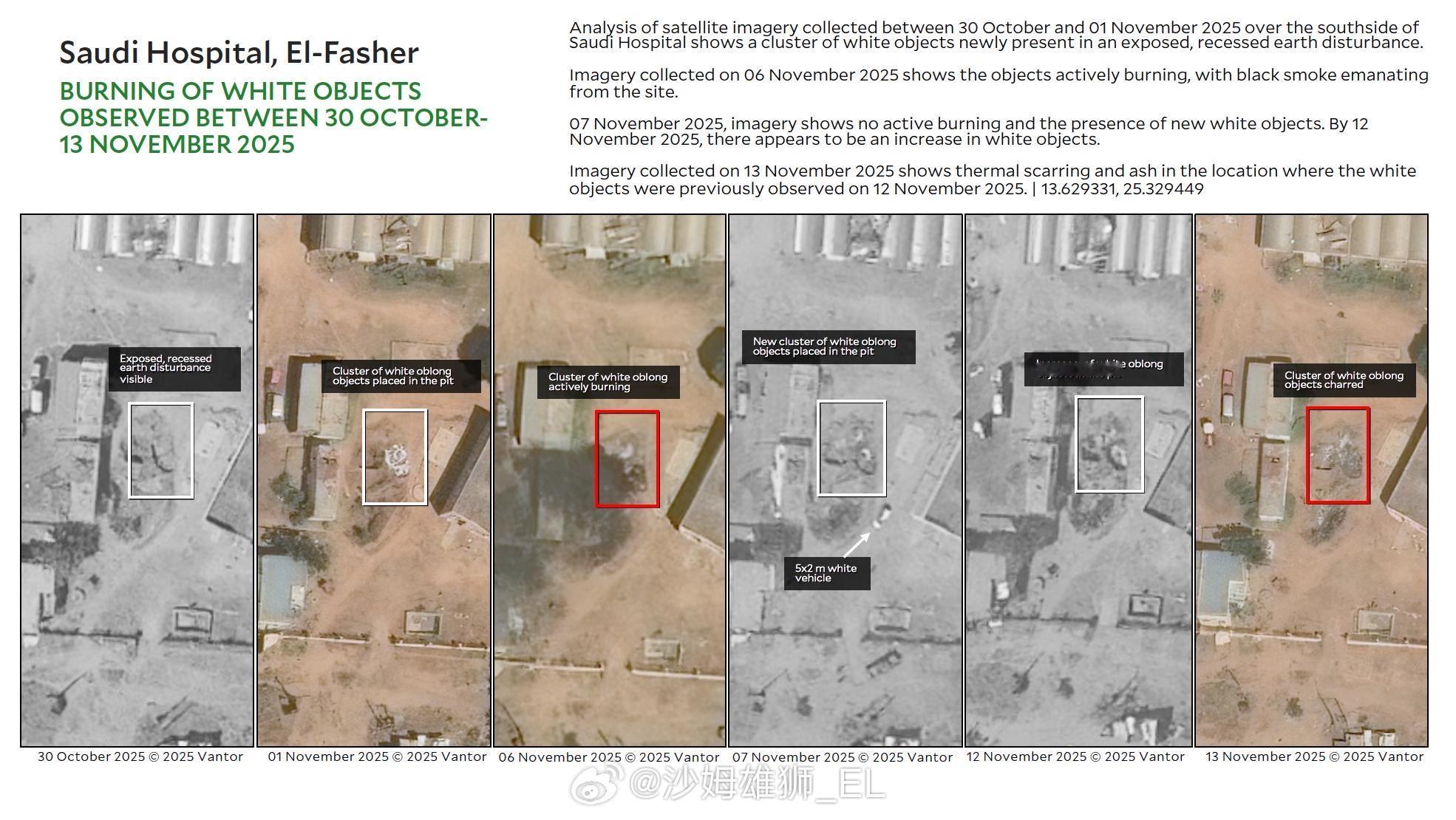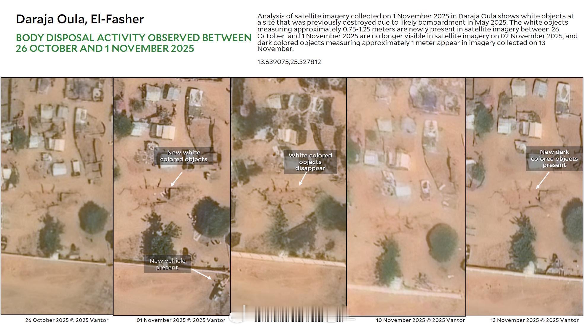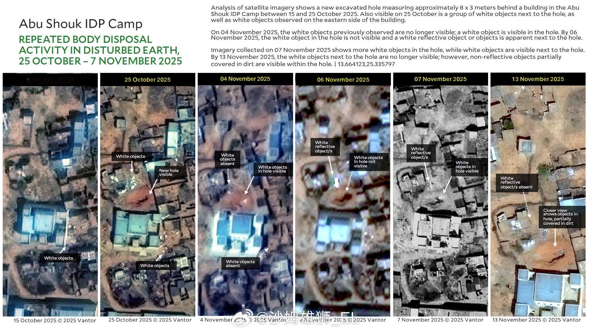 通过卫星地图在苏丹法希尔市及其周边地区新发现了4处叛军“快速支援部队”的抛尸地点。