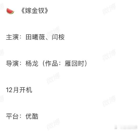 田曦薇闫桉领衔的《嫁金钗》即将官宣,两人未曾合作过的稀缺组合,叠加作品本身的神秘感,让期待值不断上升。