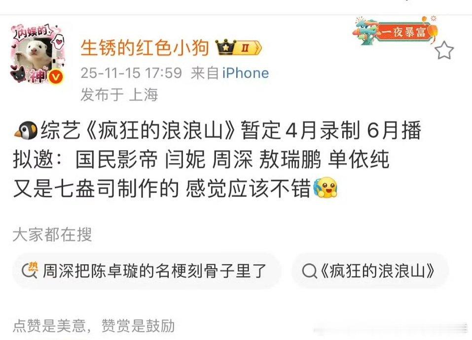 成毅尖叫男演员已经确定,C位海报已经做好了!
