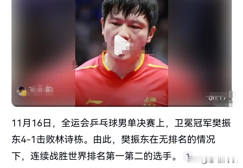 奥运冠军樊振东的含金量还在持续上升。 11月16日消息,乒乓球男单决赛,樊振东卫冕成功。 有一个词条上热搜。 樊振东连胜世界排名前二,指的是既战胜了王楚钦又战胜了林诗栋。 这真是相当的给力。 樊振东挺有个性的,此前就宣布退出世界排名。