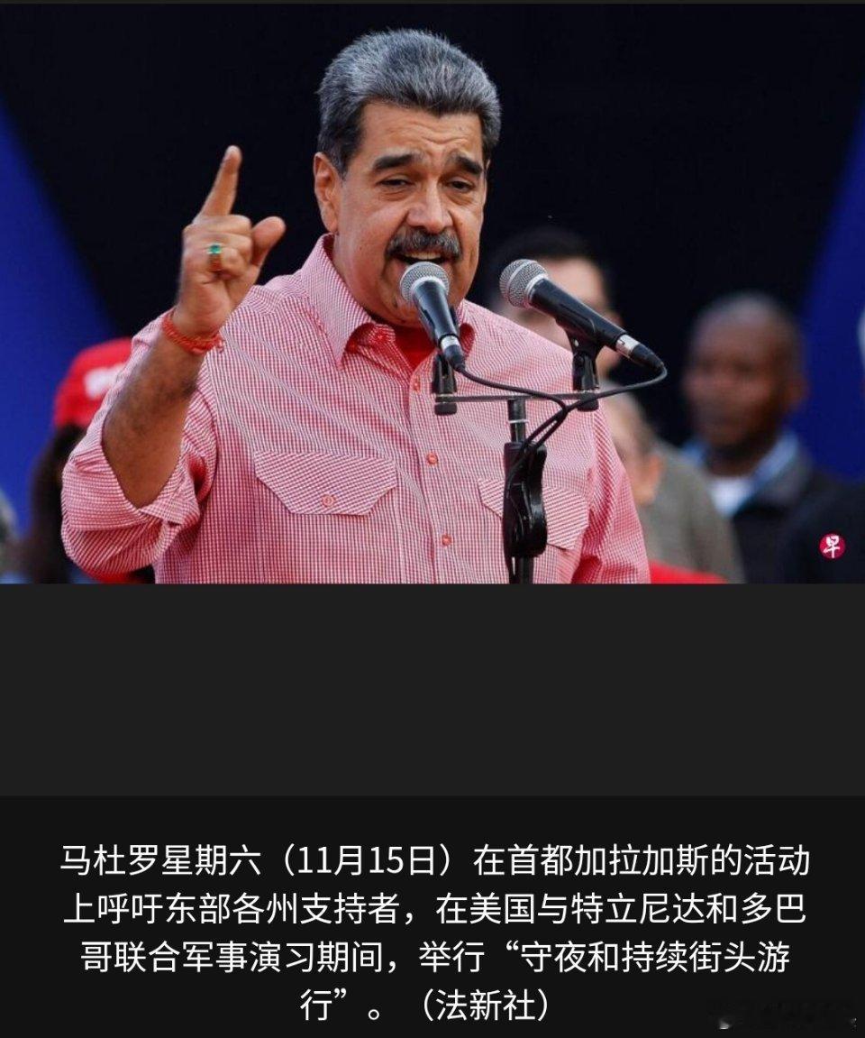 委内瑞拉总统马杜罗谴责美国与盟友特立尼达和多巴哥举行的新一轮联合军事演习不负责任,并指责华盛顿在加勒比地区不断增加军事存在。法新社报道,美国和特多宣布于11月16日至21日举行联合军演,马杜罗星期六(11月15日)谴责两国再次举办“不负责任的军演”,强调“委内瑞拉不允许任何人对本国构成威胁”。
