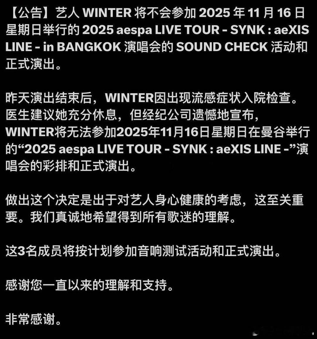 金冬天因身体状况不佳,不参加今日曼谷演唱会