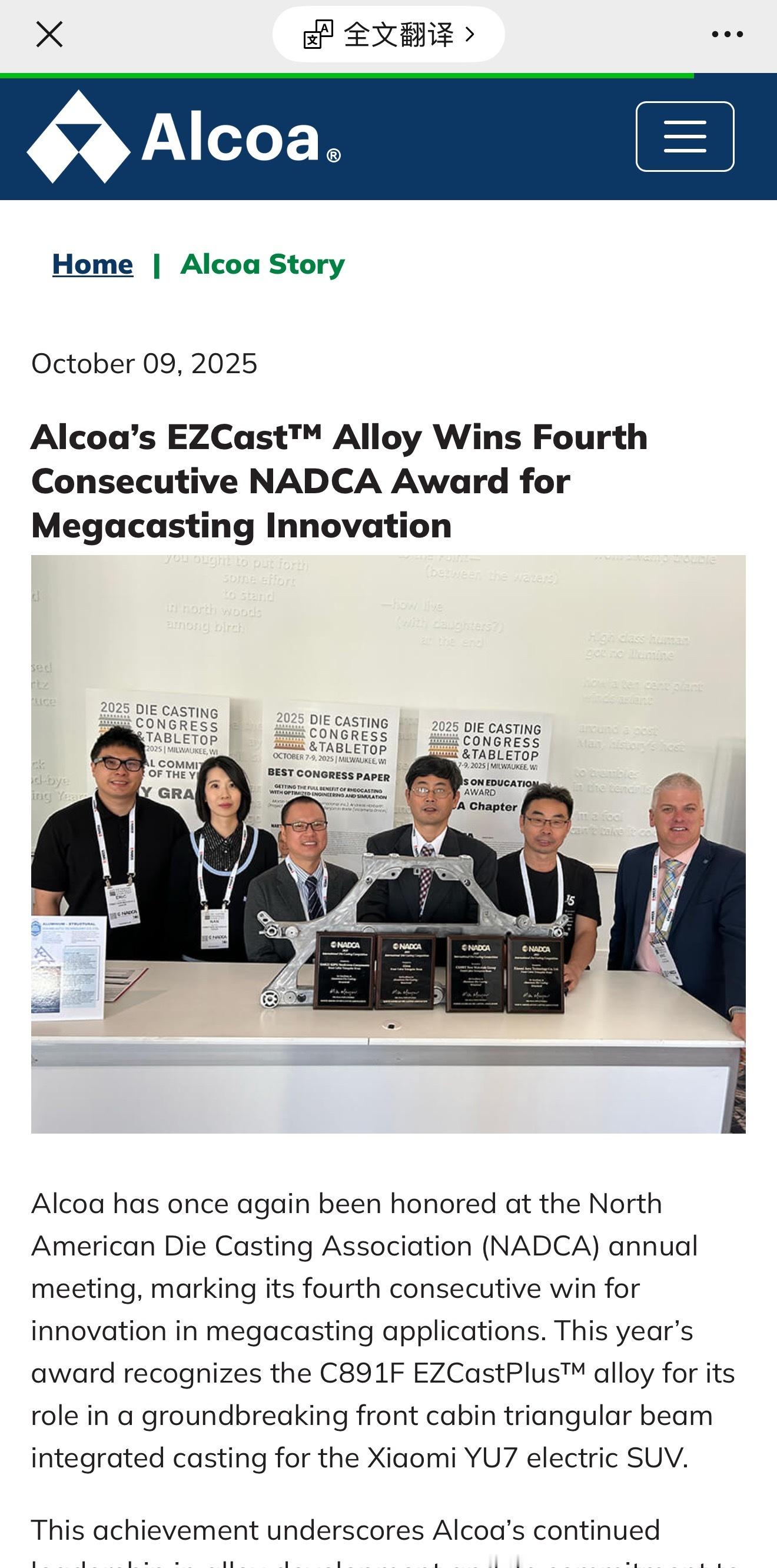 总有些人捂着耳朵晃铃铛,获奖单位清楚写着“Xiaomi Auto Technology Co, Ltd”,提名人员前三位也是小米员工。如果真是材料奖,得主该是美国铝业,提名人也该是他们工程师。材料供应商美国铝业都澄清,NADCA评的是“产品设计的创新性、整体质量”。获奖的是前舱三角梁总成,是一个复杂模块化结构件,不是一块铝。这表彰的是从设计、制造到验证的系统工程能力。奖项主体是小米,奖项性质是结构,获奖原因是系统创新,最终受益的是用户,有这么难理解?固步自封难进步,承认别人优秀并不难。故意混淆“用了先进材料”和“拿的是材料奖”,带的是什么节奏,心思不言而喻。