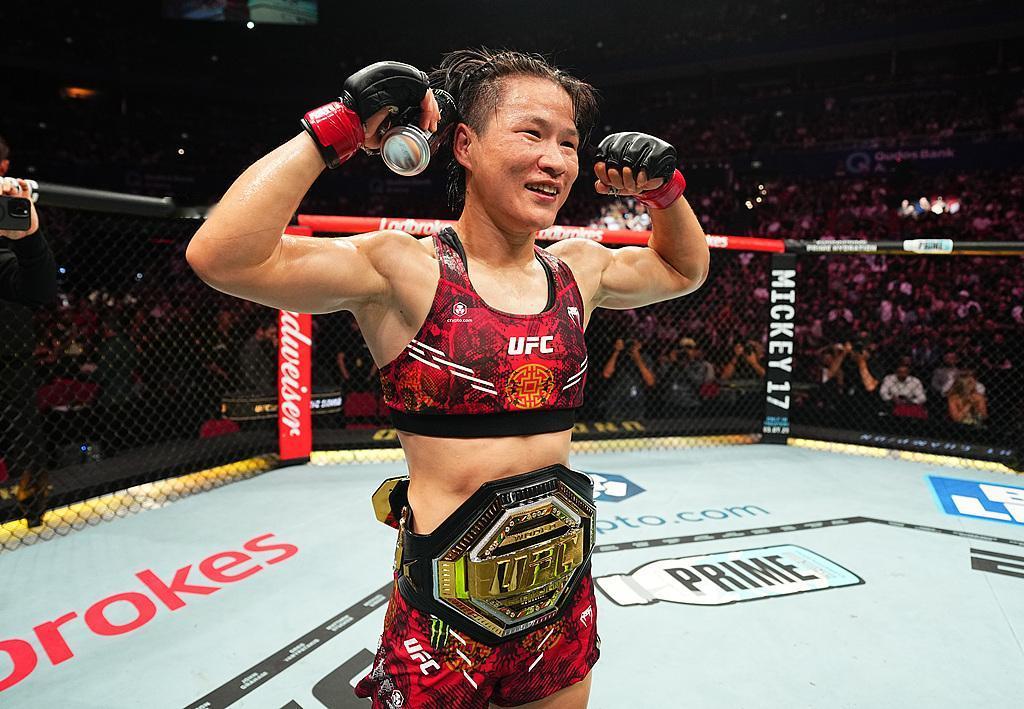 首回合一上来,张伟丽非常主动不断虚晃找节奏,随后舍甫琴科低扫。张伟丽后手直拳击中舍甫琴科。之后两人地面战,舍甫琴科拿到上位。双方纠缠一段时间起身。 就在所有人以为这会是一场势均力敌的站立对拼时,张伟丽突然改变战术!她不再执着于寻找重拳机会,而是利用自己出色的核心力量和地面控制技巧,在第二次缠抱中成功将舍甫琴科掀翻在地。这一次,她没有给对手任何喘息的机会,迅速布置手臂三角锁,整套动作行云流水,仿佛演练过千百遍。 裁判在舍甫琴科拍垫认输的瞬间吹响终止哨声,全场观众瞬间沸腾!谁能想到,这位曾经在草量级叱咤风云的中国“猛兽”,在升重挑战蝇量级女王时,竟然能在地面战中展现出如此细腻的技术?这不仅是一场胜利,更是一次对质疑者最响亮的回击——当所有人都在讨论她是否能适应新量级的身体对抗时,她用一场教科书般的 submission 证明:真正的冠军,从来不会被体重限制住野心。 此刻,张伟丽跪在八角笼中央,高举双臂,眼中闪烁着泪光。这不仅是她个人职业生涯的又一座里程碑,更是中国格斗史上浓墨重彩的一笔。