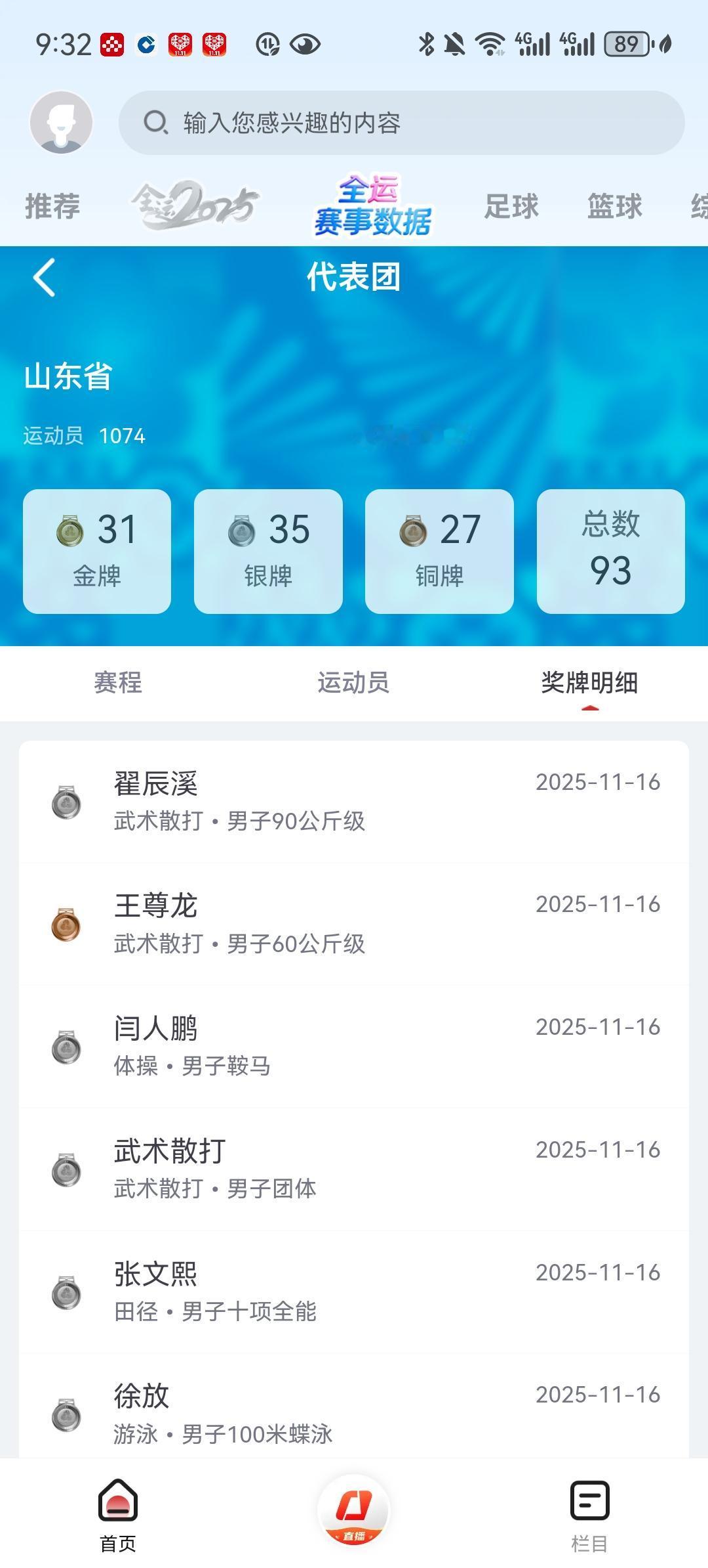 山东已经连续四届第一了,今年广东进步很快。体操,田径,跳水,花样泳,等等…都是山东的短板。