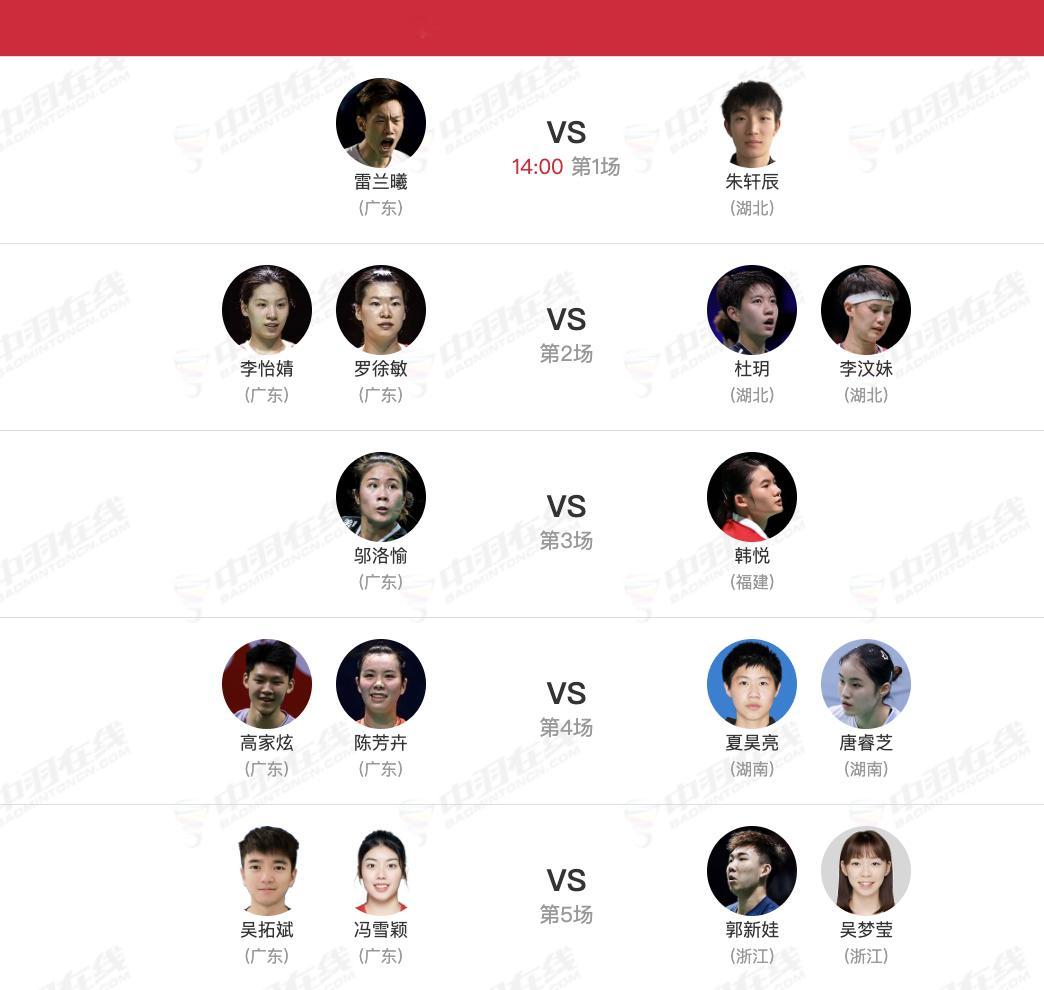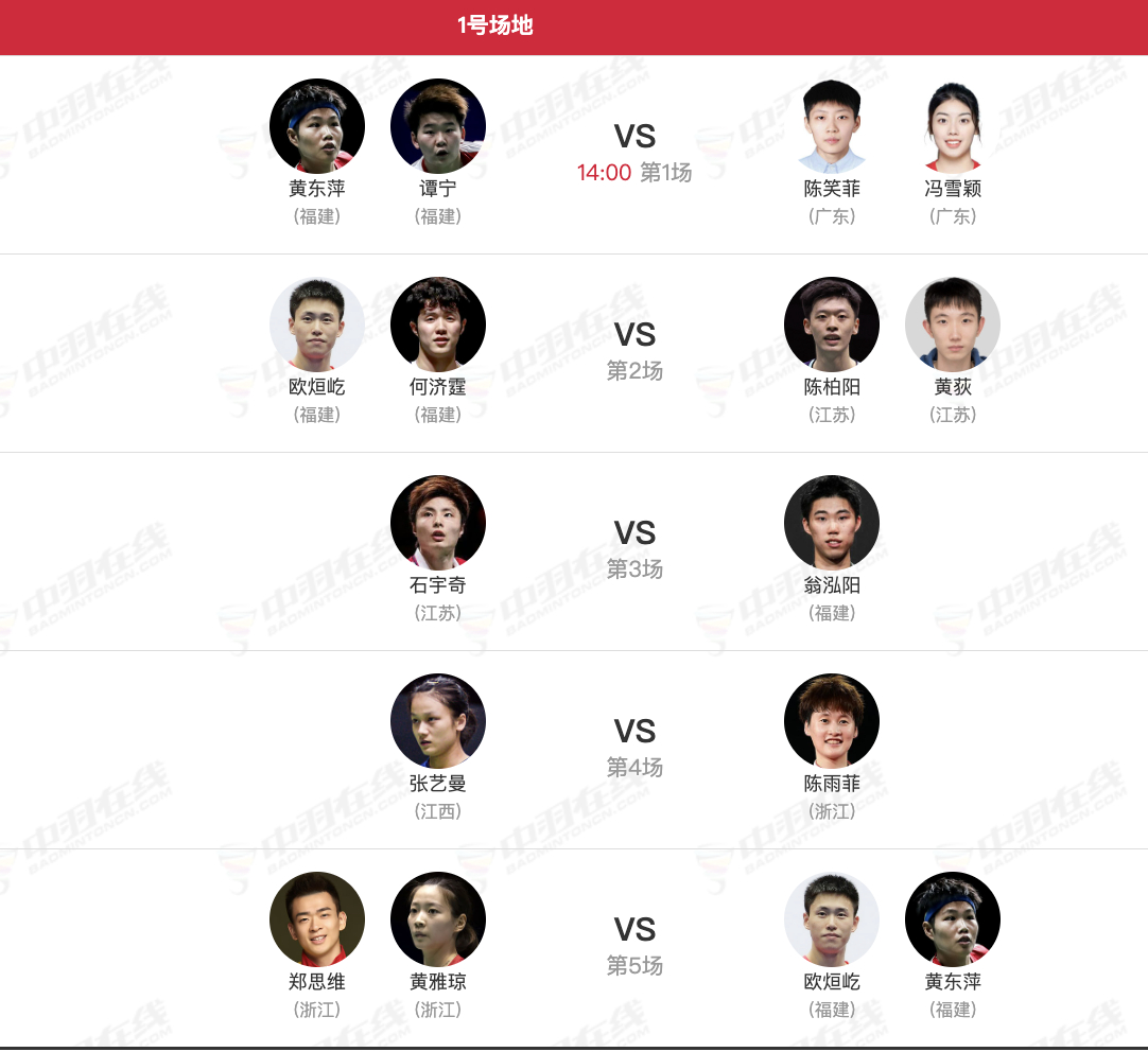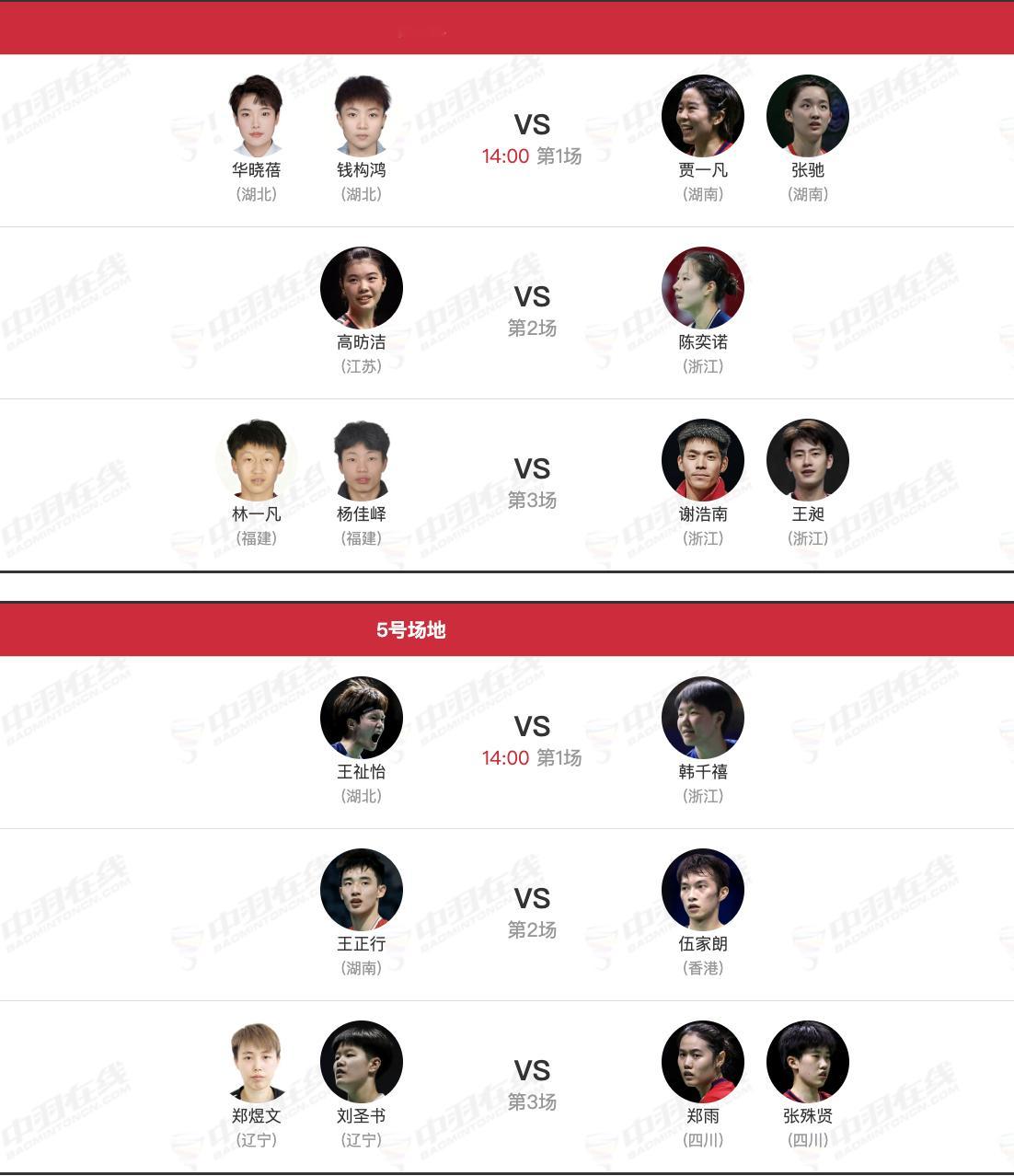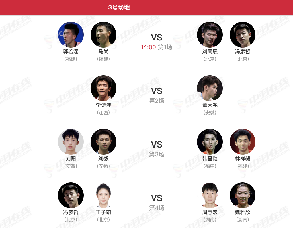 羽毛球单项赛11月17日8进4赛程,下午14点开赛: