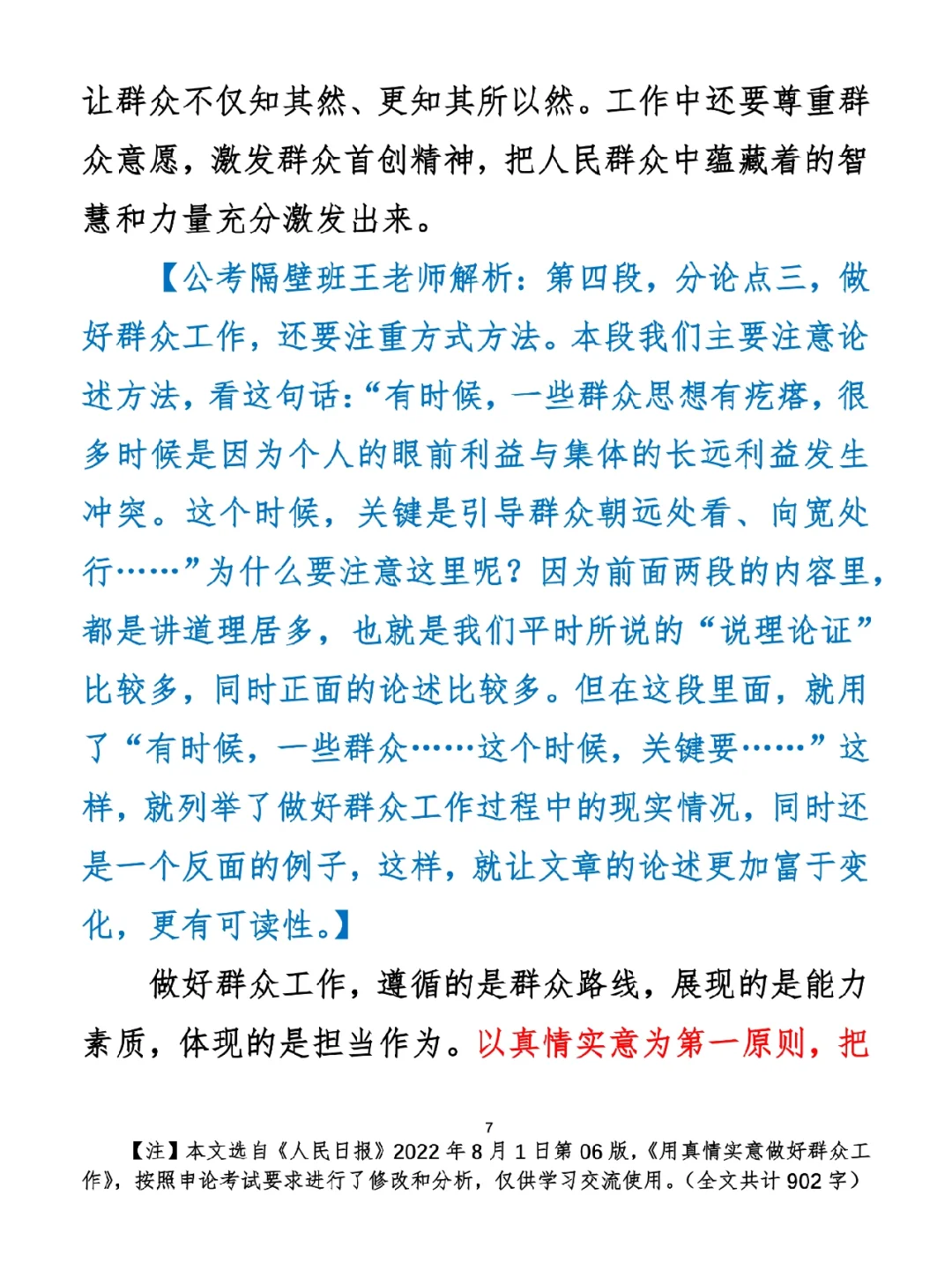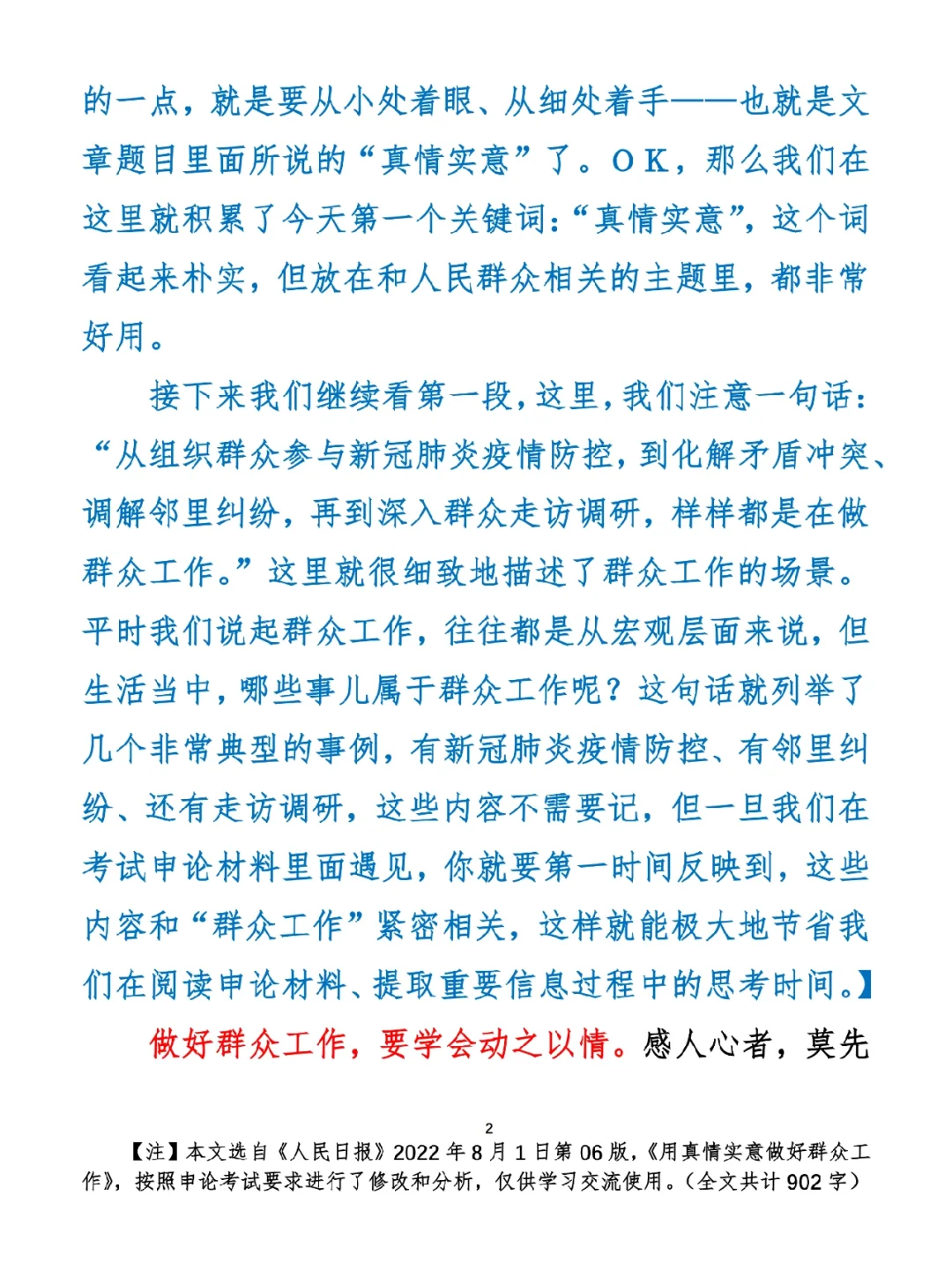 80分申论范文:用真情实意做好群众工作