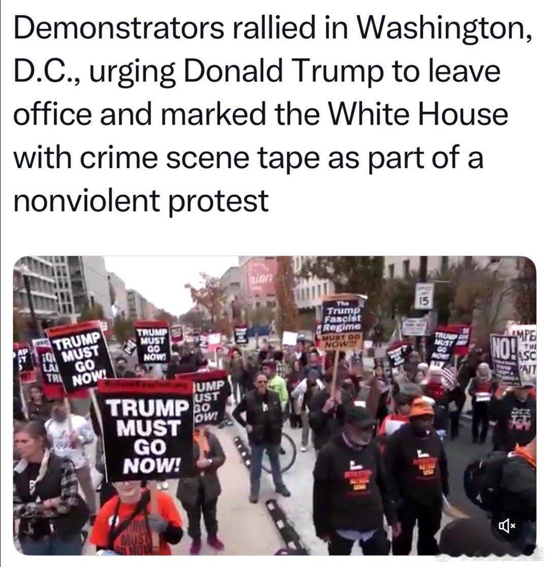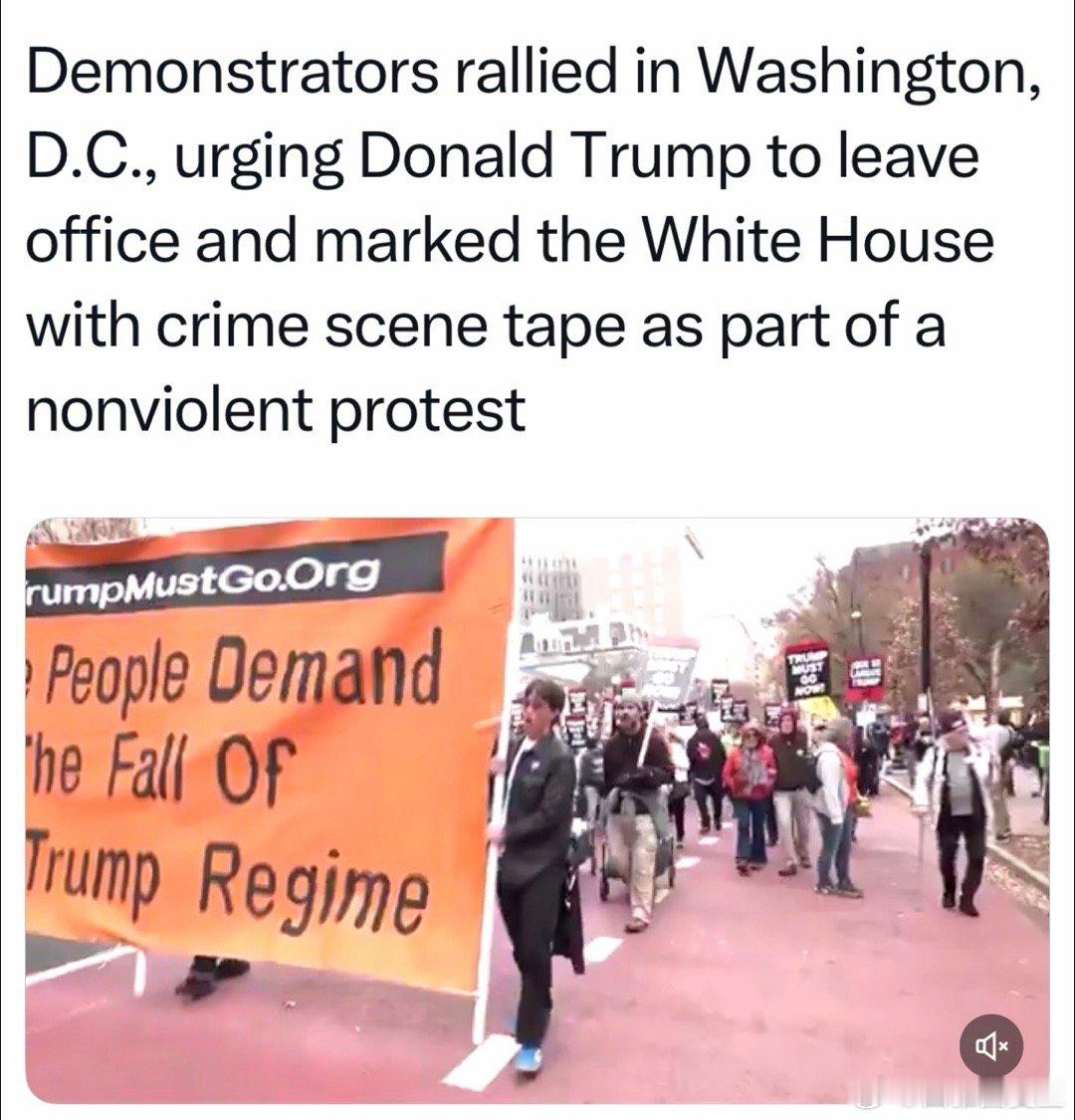 反川组织在DC集会,持“犯罪现场”标识绕行白宫,要求总统立刻引咎辞职