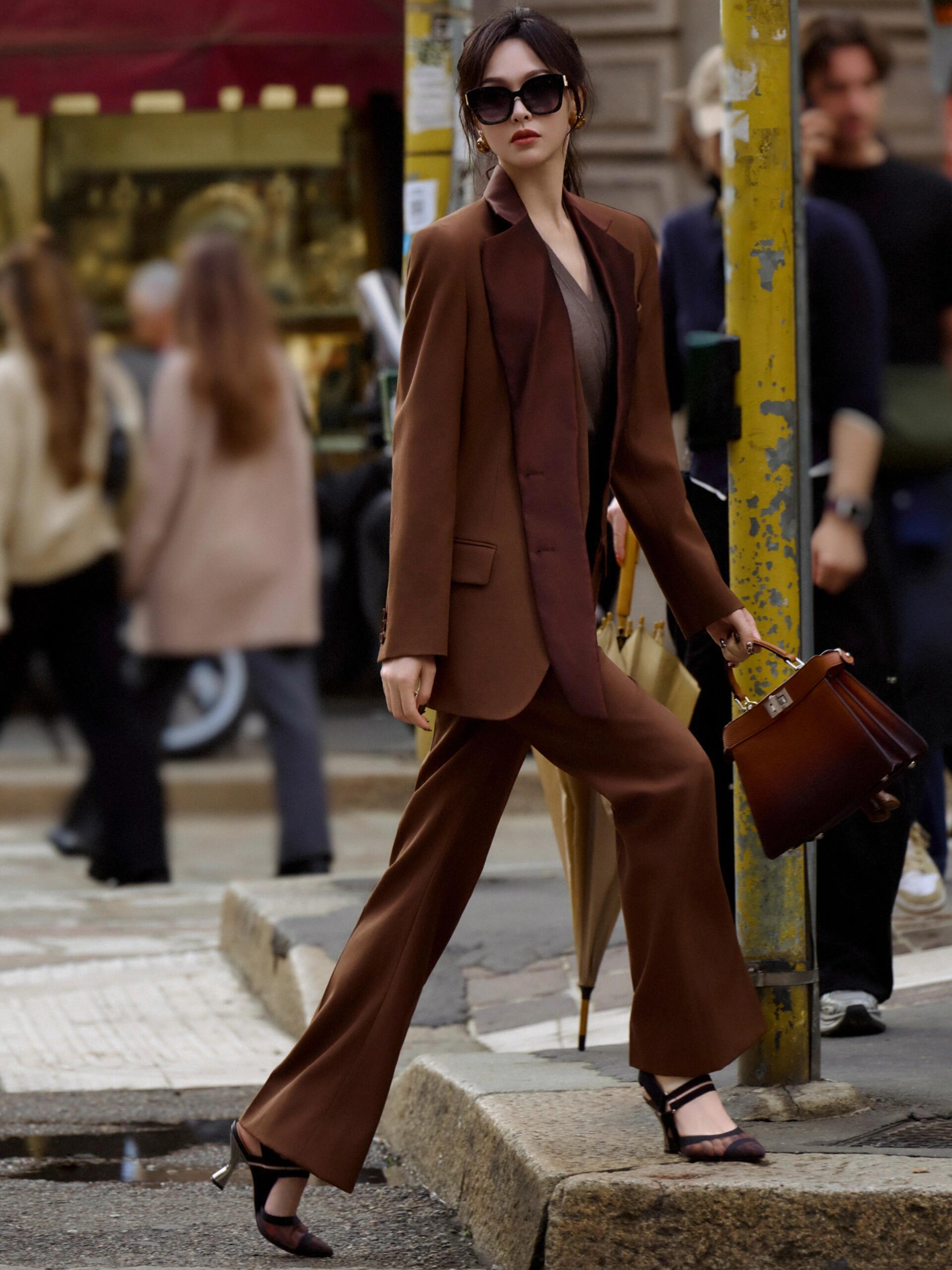 刘亦菲把死亡玫粉穿出了定制款的感觉,这种颜色普通人穿上分分钟黑三度,她居然能穿出