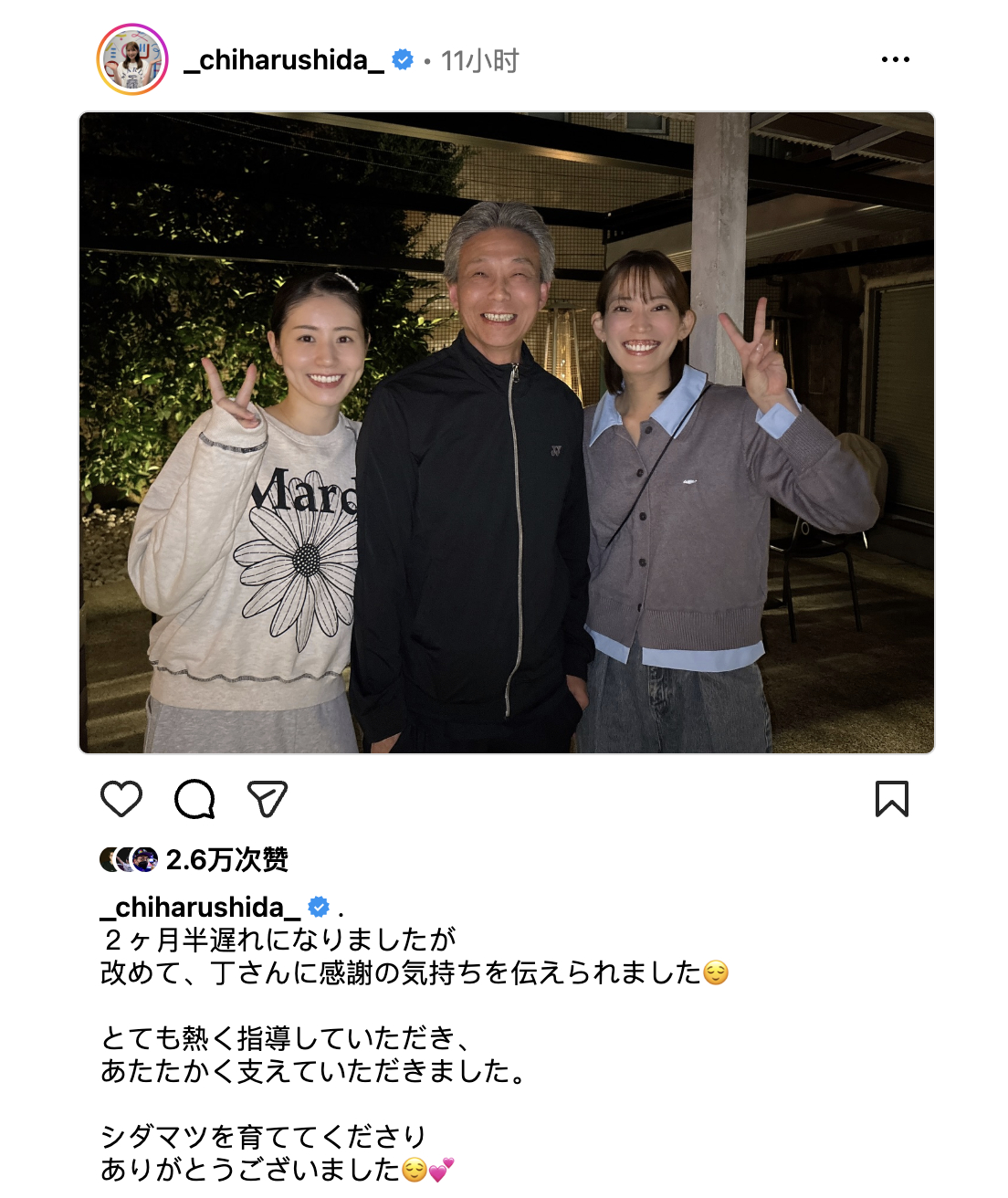 志田千阳发文感谢丁其庆:虽然晚了两个半月,但总算能再次向丁先生表达我的感激之情😌你一直给予我热忱的指导,也始终用温暖支持着我。感谢您培养了山羊组合。😌💕