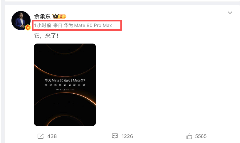 看余承东发博小尾巴来看,阿华也有Pro Max了,那是不是意味着这一次80的阵容是Mate 80,Mate 80 Pro和Mate 80 Pro Max外加一个非凡大师。改PM我觉得念的顺口一点,之前Pro和Pro+经常会混淆