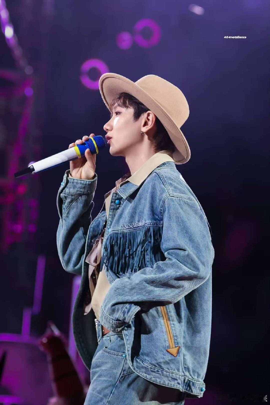 谁能拒绝牛仔风的汪苏泷!做旧牛仔衣配同系列流苏裤,宽檐帽一戴自带松弛氛围感,耳饰和金属腰带又添了精致感。这造型适配度简直是演唱会颜值天花板。