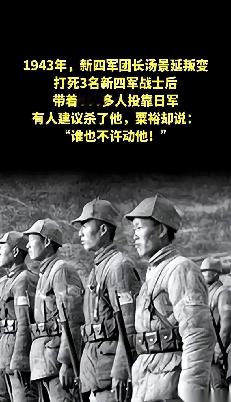 团长叛变了。 亲手打死自己三个兵,带着六百多号兄弟,转身就投了鬼子。 消息传回来,整个部队都炸了,就粟裕一个人,眼睛都没眨一下,撂下一句话:“谁也不许动他!” 凭什么? 这不是扯淡吗?那可是汤景延啊,从抗战一开始就拉队伍的老人儿,怎么就成了汉奸?底下的兵眼都红了,恨不得立马冲过去把他活剐了。 可谁能想到,这场天大的“叛变”,从头到尾就是粟裕亲自点的头。 一场戏,一场拿命在赌的戏。 为了骗过鬼子,不光要演,还得演得真,真到连自己人都得瞒着。 你敢信吗?汤景延带着自己全家老小住进了鬼子窝,这就是他的“投名状”。 白天跟日伪头子推杯换盏,称兄道弟,晚上在衣领里摸着那张小小的党员证,告诉自己得扛住。 整整163天。 最难熬的是什么?不是鬼子怀疑的眼神,是带队路过根据地,听见身后同胞们骂的那句“狗汉奸”。 那声音,比子弹还疼。 终于,时机到了。 一场“婚宴”,所有日伪头头脑脑都被请来喝酒。酒过三巡,杯子往地上一摔——动手! 等他带着队伍杀回来的时候,所有人都看傻了。 六百多号兄弟,一个都没少,还扛回了三挺机枪,一百多条枪,子弹十万发。 这哪是叛逃,这简直是去鬼子仓库里来了趟零元购啊。 这时候大家才回过神,琢磨透了粟裕那句“谁也不许动他”的分量。 那不是命令,那是一种什么样的信任啊。 有些功勋,注定刻不在碑上,只能藏在当事人的心里,烂在肚子里。 这才是真正的爷们儿。